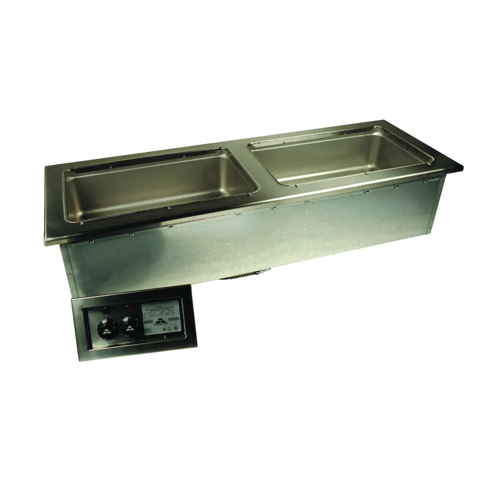 The Slim Series Hot Food Well Unit features two 12" x 20" sealed hot food wells with drains, accommodating pan inserts up to 6-1/4" deep. This versatile unit supports both wet and dry operation, giving you the flexibility to serve a variety of dishes with ease. The remote control panel with individual infinite controls and indicator lights ensures precise temperature management, allowing you to maintain the quality and safety of your food.