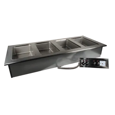 The Advance Tabco Hot Food Well Unit features a 12" x 20" sealed hot food well with a drain, accommodating pan inserts up to 6-1/4" deep. This versatile unit supports both wet and dry operation, providing flexibility for various culinary needs. The cut-out size of 17-1/4W x 23-3/8D ensures a precise fit, making installation straightforward.