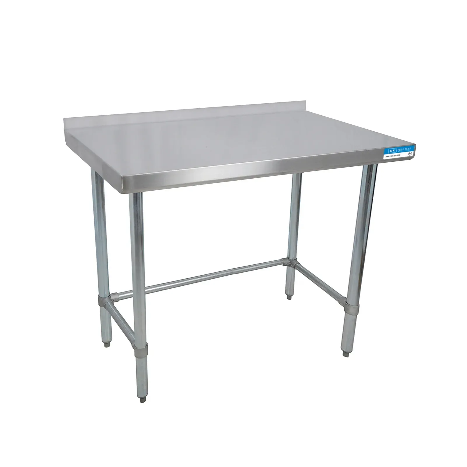 Cook with precision using the BK Resources SVTROB-7230 Work Table. This durable and versatile work table is designed specifically for commercial restaurant use. With its 18/430 stainless steel top, turndown edges on the front and sides, and reinforced channels, this work table is built to withstand the demands of a busy kitchen. The 1-1/2" rear riser and open base with stainless steel side and rear bracing provide additional stability and support. The adjustable stainless steel bullet feet ensure that the table is level and secure on any surface. With a spacious 72"W x 30"D surface, this work table offers ample space for food preparation, plating, and other kitchen tasks. Whether you're a professional chef or a restaurant owner, the BK Resources SVTROB-7230 Work Table is a must-have addition to your commercial kitchen.