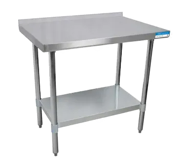 Take your kitchen to the next level with the BK Resources VTTR-7230 Work Table. This stainless steel work table is designed to enhance efficiency and functionality in a commercial restaurant setting. The 18/430 stainless steel top with turndown edges on the front and sides provides a durable and easy-to-clean surface for food preparation. Reinforced with channels, this work table is built to withstand the demands of a busy kitchen. The 1-1/2" rear riser helps to keep items from falling off the back, while the adjustable galvanized undershelf offers convenient storage space. The 1-5/8" diameter galvanized legs with adjustable high-impact corrosion-resistant feet ensure stability and durability. NSF certified, this work table meets the highest standards of cleanliness and sanitation. Upgrade your kitchen with the BK Resources VTTR-7230 Work Table and experience improved productivity and organization.