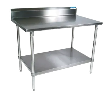 Enhance the heart of your restaurant with the BK Resources VTTR5-3630 Work Table. This stainless steel work table is designed to withstand the demands of a commercial restaurant setting. The 36"W x 30"D stainless steel top provides ample space for food preparation, while the turndown edges on the front and sides prevent spills and messes. The table is reinforced with channels for added durability, ensuring it can handle heavy use. With a 5" backsplash, this work table helps to keep your kitchen clean and organized. The adjustable galvanized undershelf allows for convenient storage of kitchen essentials, while the 1-5/8" dia. galvanized legs provide stability. The adjustable high-impact corrosion-resistant feet ensure that the table stays level on any surface. NSF certified, this work table meets the highest standards of cleanliness and safety. Upgrade your restaurant's workspace with the BK Resources VTTR5-3630 Work Table.