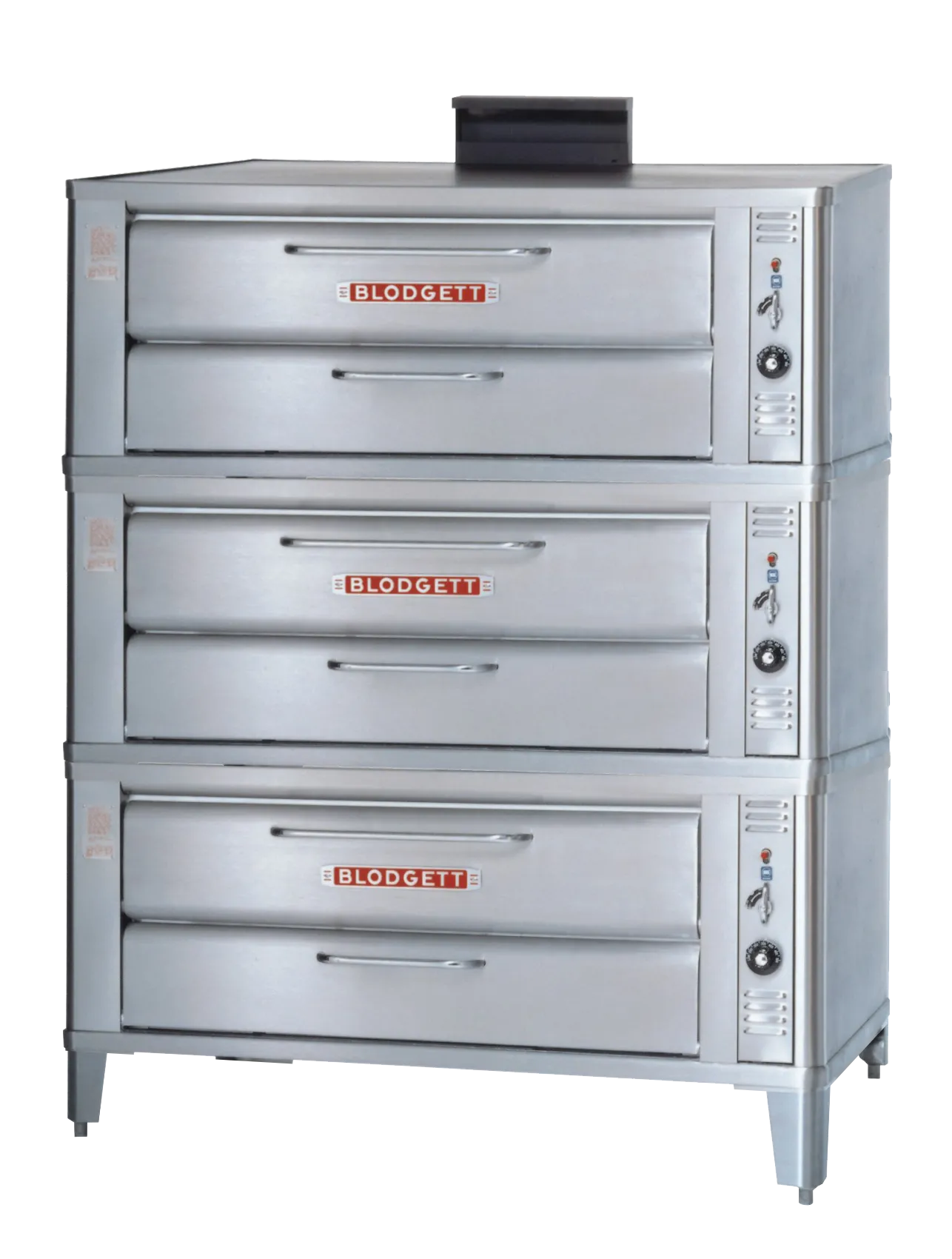 The Blodgett Deck Oven line has set industry wide standards for excellence in baking characteristics, performance and reliability. Simplicity of design and quality construction throughout assure years of trouble-free operation. Blodgett provides the strongest warranty in the business with a standard five-year door warranty! The compact 900 Series deck ovens are built with the same quality construction as their larger siblings with a space-saving 51″ x 30″ footprint. 911-TPL is a triple stack oven with three 7” high baking compartments and includes 7” adjustable s/s legs, s/s draft diverter or direct vent, crown angle trim and double gas connector