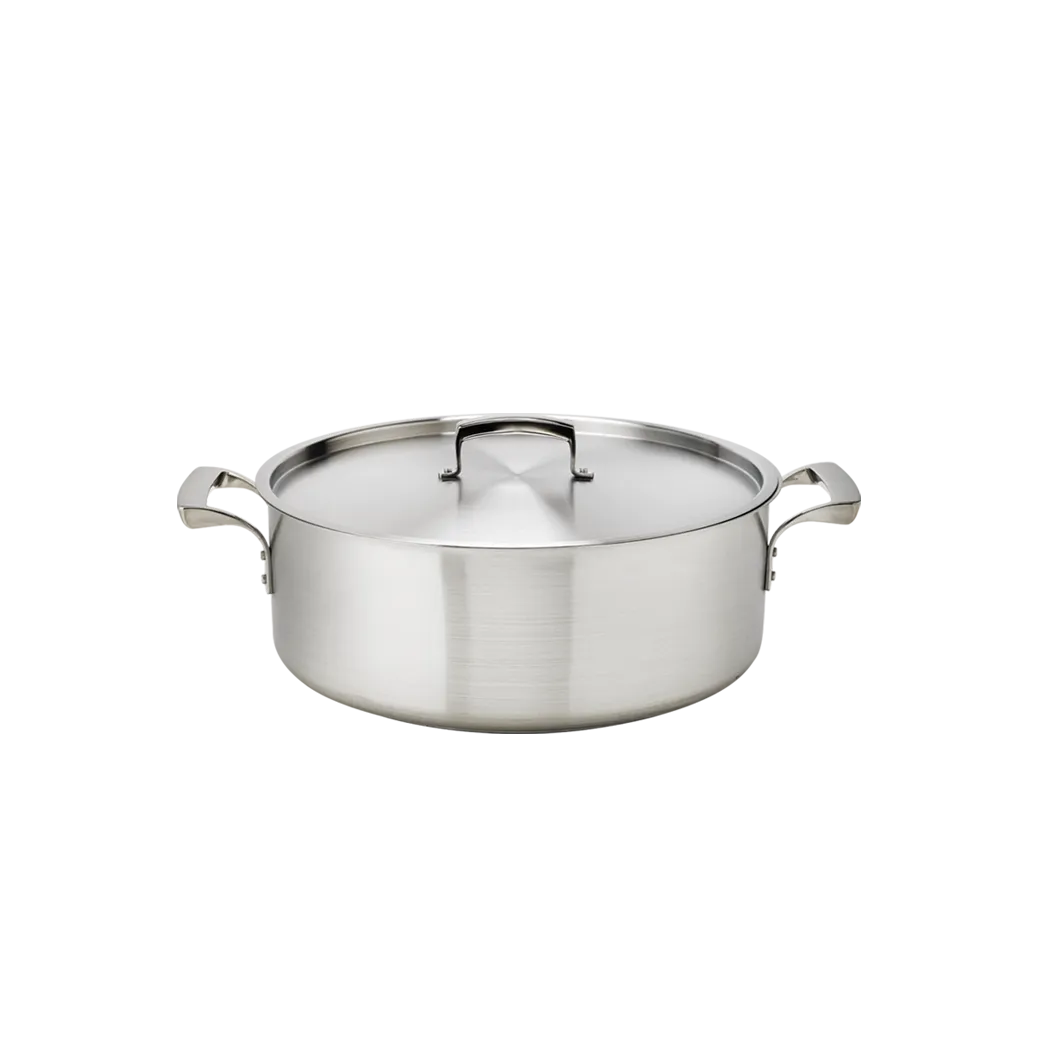 Boost functionality with quality tools with Browne Foodservice's Cookware - THERMALLOY Stainless. Model number 5724009 is a versatile addition to any commercial restaurant kitchen. This 8qt stainless steel brazier is designed to withstand the demands of a busy kitchen, ensuring durability and longevity. With its NSF certification, you can trust that this brazier meets the highest standards of food safety and sanitation. The THERMALLOY stainless steel construction provides excellent heat distribution, allowing for even cooking and preventing hot spots. Its large capacity makes it perfect for braising, stewing, and simmering large quantities of food. Upgrade your kitchen with this high-quality cookware and experience enhanced efficiency and performance.