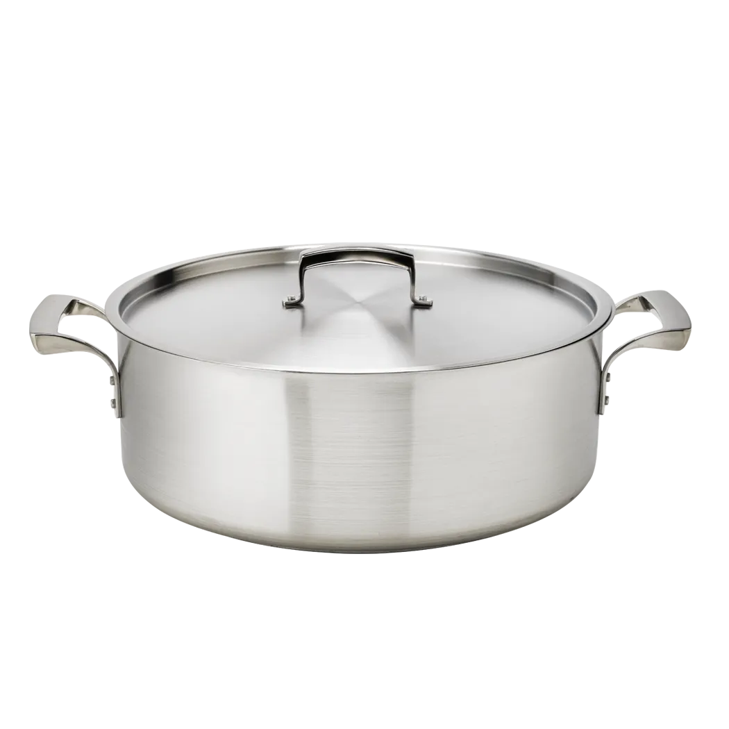 Stay ahead in the culinary landscape with Browne Foodservice's Cookware - THERMALLOY Stainless. Designed for commercial restaurant use, this 25qt SS Brazier is a must-have for any professional kitchen. With its durable stainless steel construction, this brazier ensures even heat distribution, allowing for consistent cooking results. The NSF certification guarantees its safety and suitability for commercial use. The Browne Foodservice 5724024 model offers a generous capacity, perfect for preparing large quantities of stews, braised meats, and more. Its sleek design and sturdy handles make it easy to handle and transport, while the included lid helps to retain heat and moisture for flavorful dishes. Whether you're running a bustling restaurant or catering to a large event, this THERMALLOY Stainless brazier is a reliable and efficient addition to your kitchen arsenal. Trust Browne Foodservice to deliver quality and performance that will elevate your culinary creations.