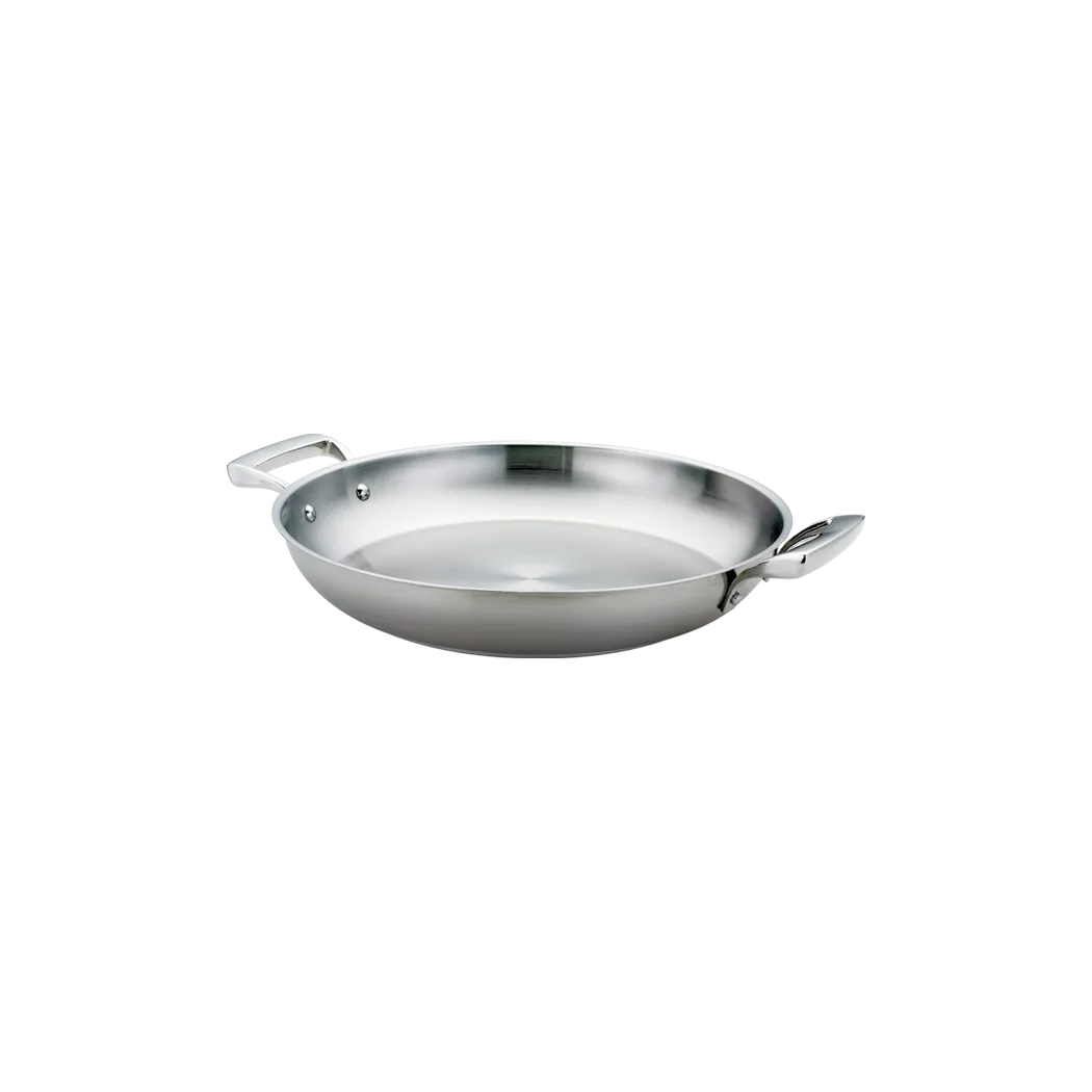 Set the standard with top-tier tools with Browne Foodservice's Cookware - THERMALLOY Stainless. This high-quality paella pan, model number 5724172, is a must-have for any commercial restaurant. Made with durable stainless steel, it ensures even heat distribution and excellent heat retention, allowing for perfect paella every time. With a size of 11x2" (28x5cm), this pan provides ample space for cooking large quantities of paella, making it ideal for busy restaurant kitchens. The THERMALLOY Stainless construction also ensures easy cleaning and maintenance, saving valuable time and effort. Whether you're a professional chef or a restaurant owner, Browne Foodservice's Cookware - THERMALLOY Stainless is the perfect choice for creating delicious and authentic paella dishes that will impress your customers.