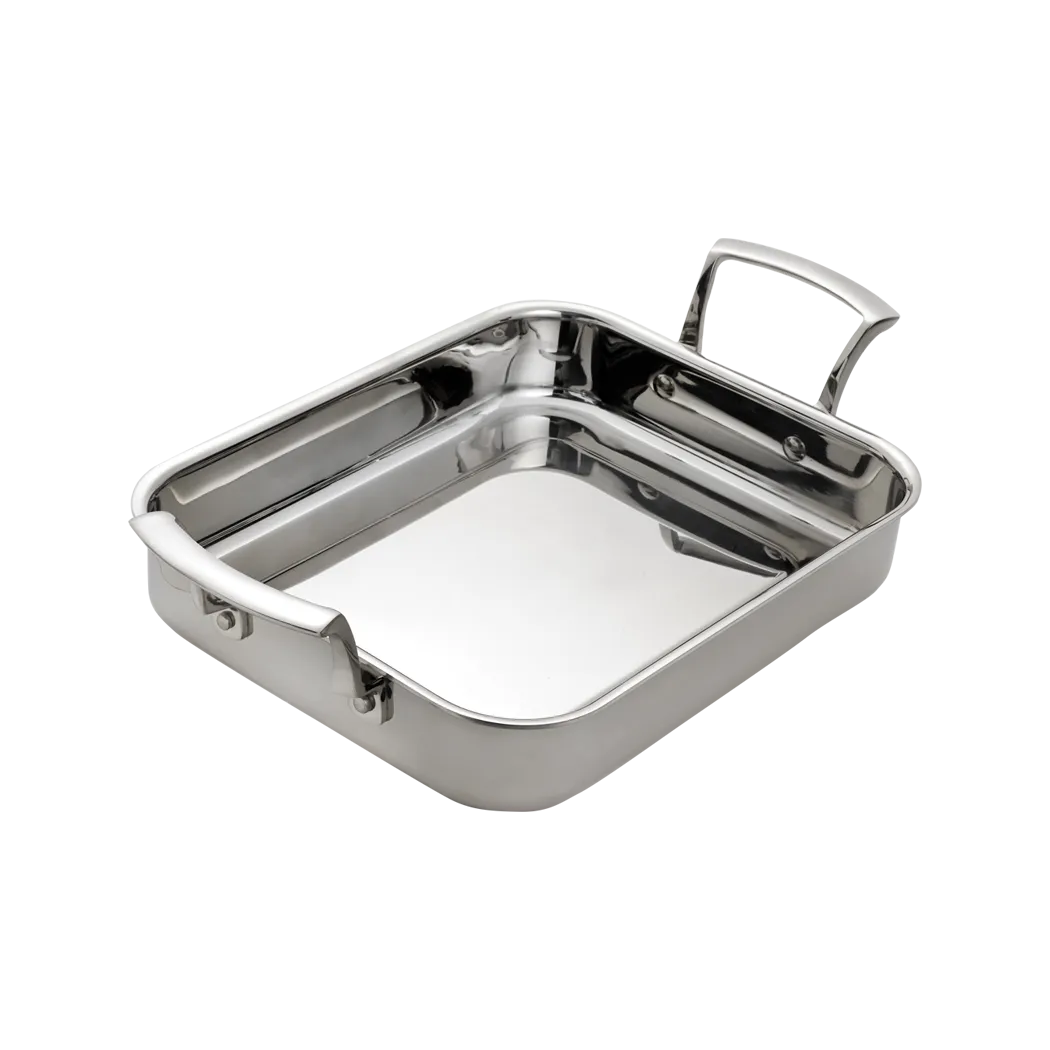 Stay competitive with kitchen innovations with Browne Foodservice's Cookware - THERMALLOY Stainless. Model number 5724175 is a versatile and durable addition to any commercial restaurant. This 3 qt / 2.8L roast pan is designed to meet the demands of a busy kitchen, ensuring efficient cooking and exceptional results. Made with high-quality stainless steel, it offers superior heat distribution and retention, allowing for even cooking and reducing hot spots. The 11x8.7x2" / 28x22x5cm size is perfect for roasting meats, vegetables, and more, accommodating large quantities of food. With its sleek and professional design, this pan is not only functional but also adds a touch of elegance to any kitchen. Upgrade your kitchen with Browne Foodservice's THERMALLOY Stainless cookware and stay ahead of the competition.