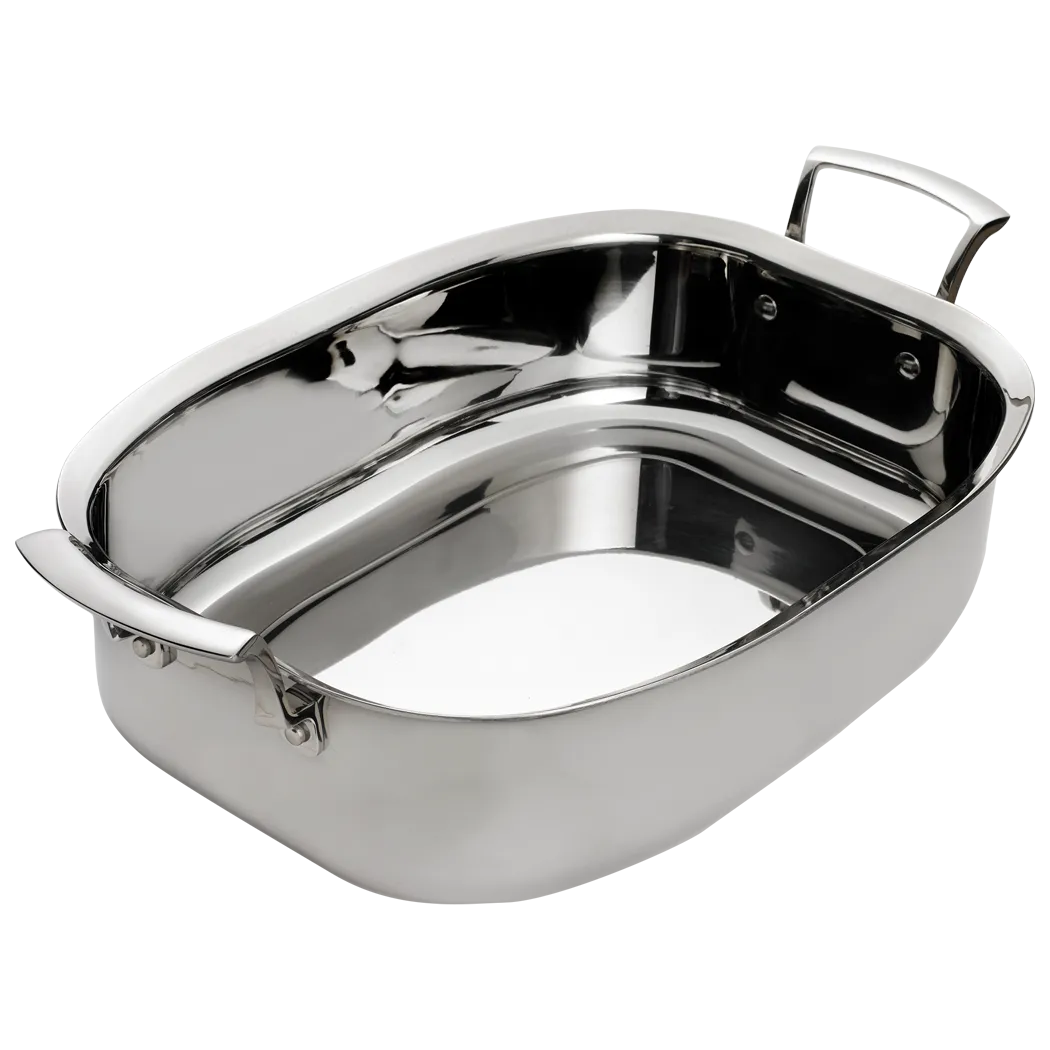 Elevate the reputation of your commercial restaurant with the Browne Foodservice, 5724179, Cookware - THERMALLOY Stainless. This high-quality roast pan is a must-have tool for any professional kitchen. With a generous capacity of 7 quarts (6.6 liters), it allows you to prepare large quantities of delicious meals with ease. The stainless steel construction ensures durability and even heat distribution, resulting in perfectly cooked dishes every time. Measuring 14x10.2x3.7 inches (36x26x9.5 cm), this pan fits comfortably in most ovens and is ideal for roasting meats, vegetables, and more. Its sleek design and polished finish add a touch of elegance to your presentation. Invest in this versatile and durable roast pan to enhance your culinary creations and impress your customers.