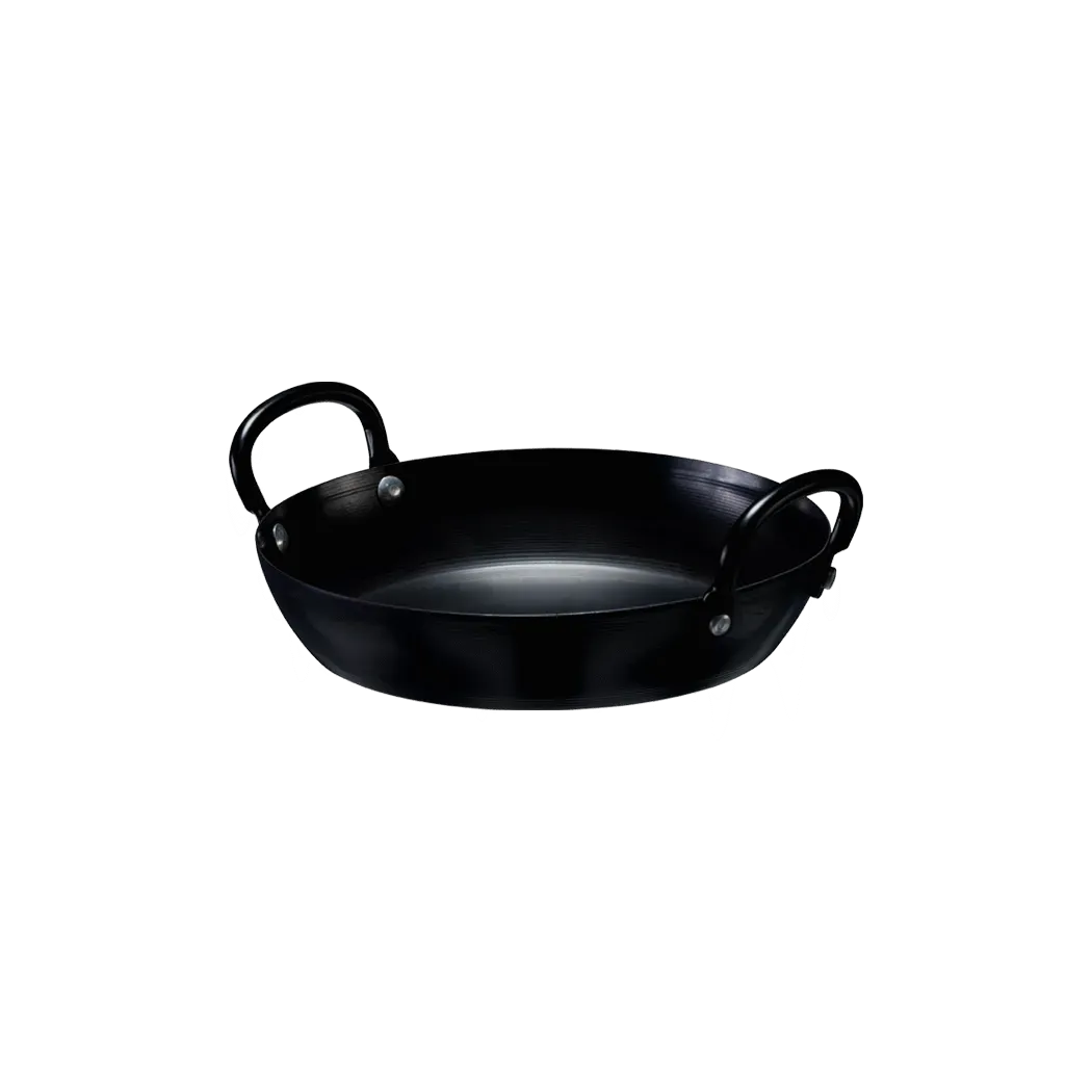 Enhance your commercial restaurant offerings with the Browne Foodservice, 573746, Cookware - THERMALLOY Carbon Steel. This state-of-the-art fry pan is designed to elevate your cooking experience. Crafted with black carbon steel, it ensures even heat distribution and excellent heat retention, allowing you to achieve perfect results every time. The 6.3"/16cm size is ideal for various culinary creations, from sautéing vegetables to searing meats. With its two-hand design, this fry pan offers superior control and maneuverability, making it a valuable tool in any busy kitchen. The THERMALLOY Carbon Steel construction guarantees durability and longevity, withstanding the demands of a commercial restaurant environment. Whether you're a professional chef or a passionate home cook, this Browne Foodservice fry pan is a must-have addition to your kitchen arsenal. Elevate your culinary creations and impress your customers with this high-quality cookware.