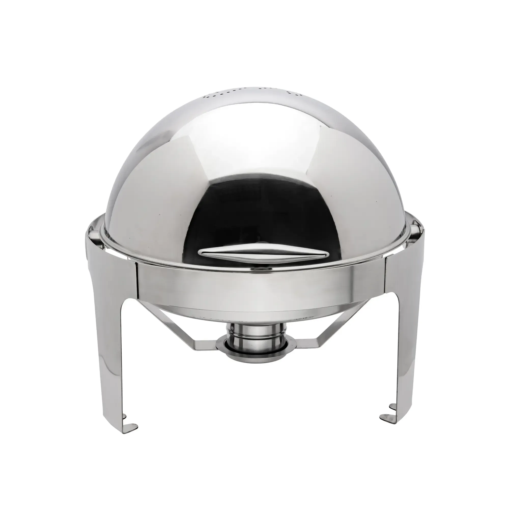 Equip for success with essential tools like the Browne Foodservice Rondo Round Chafer 7 qt (6.6L) With Roll Top Cover. This premium chafer, model number 575138, is a must-have for any commercial restaurant. With its sleek design and durable construction, it is perfect for showcasing and serving your delicious dishes. The roll top cover not only adds a touch of elegance but also helps to keep your food warm and fresh. The 7 qt (6.6L) capacity ensures that you have plenty of space to serve large quantities of food, making it ideal for buffet-style dining. Don't miss out on this essential chafer that will elevate your restaurant's dining experience.