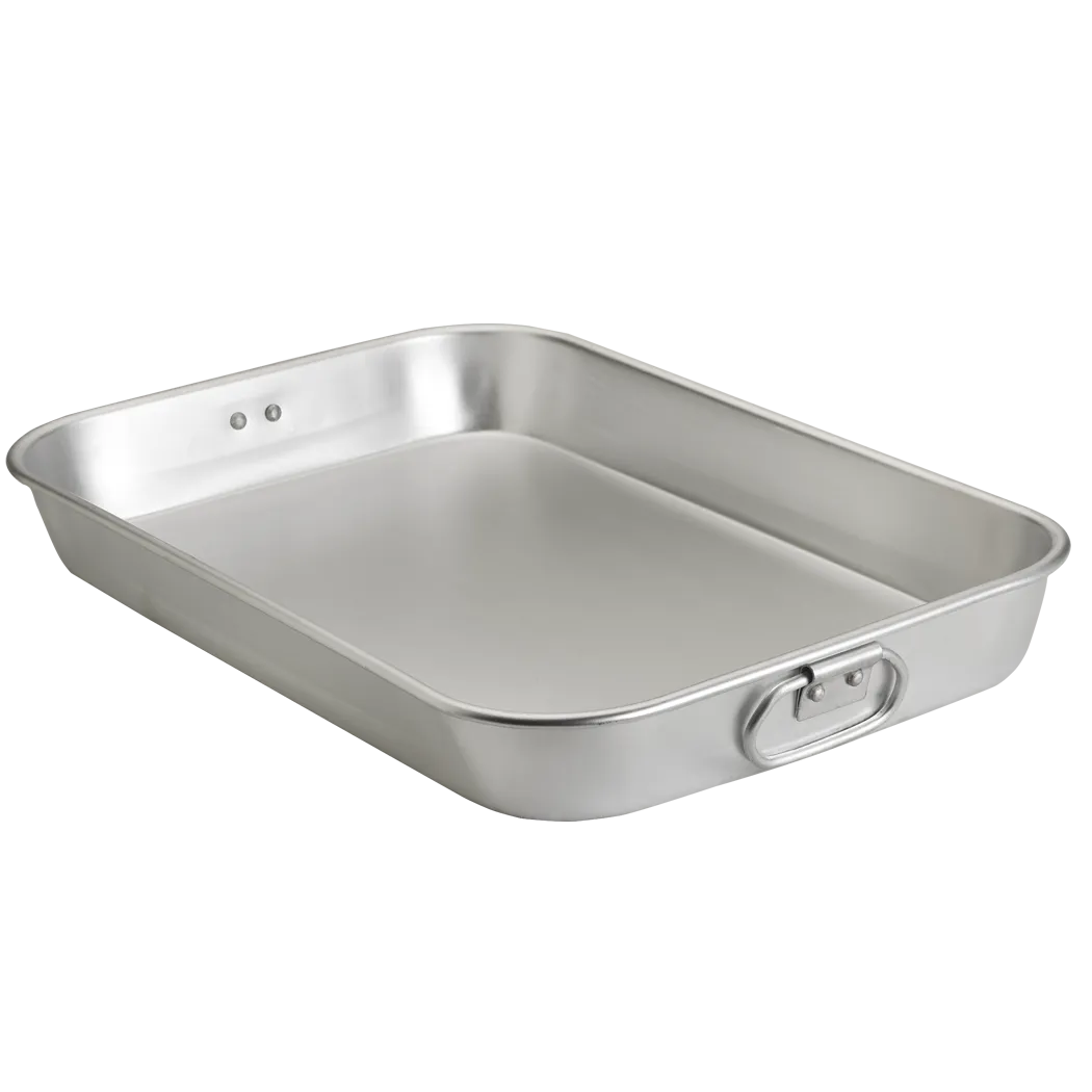 Craft dishes with top-notch instruments using Browne Foodservice's THERMALLOY Bakeware. Specifically designed for commercial restaurant use, this 5811015 model is a must-have for any professional kitchen. Made from durable aluminum, this 17x11x2" (44x29x5.5cm) roast pan is built to withstand the demands of a busy kitchen while ensuring even heat distribution for perfectly cooked meals every time. Its THERMALLOY construction guarantees superior heat retention, allowing for efficient cooking and serving. Whether you're roasting meats, baking casseroles, or creating delectable desserts, this bakeware is up to the task. Upgrade your culinary creations with Browne Foodservice's THERMALLOY Bakeware and experience the difference in quality and performance.