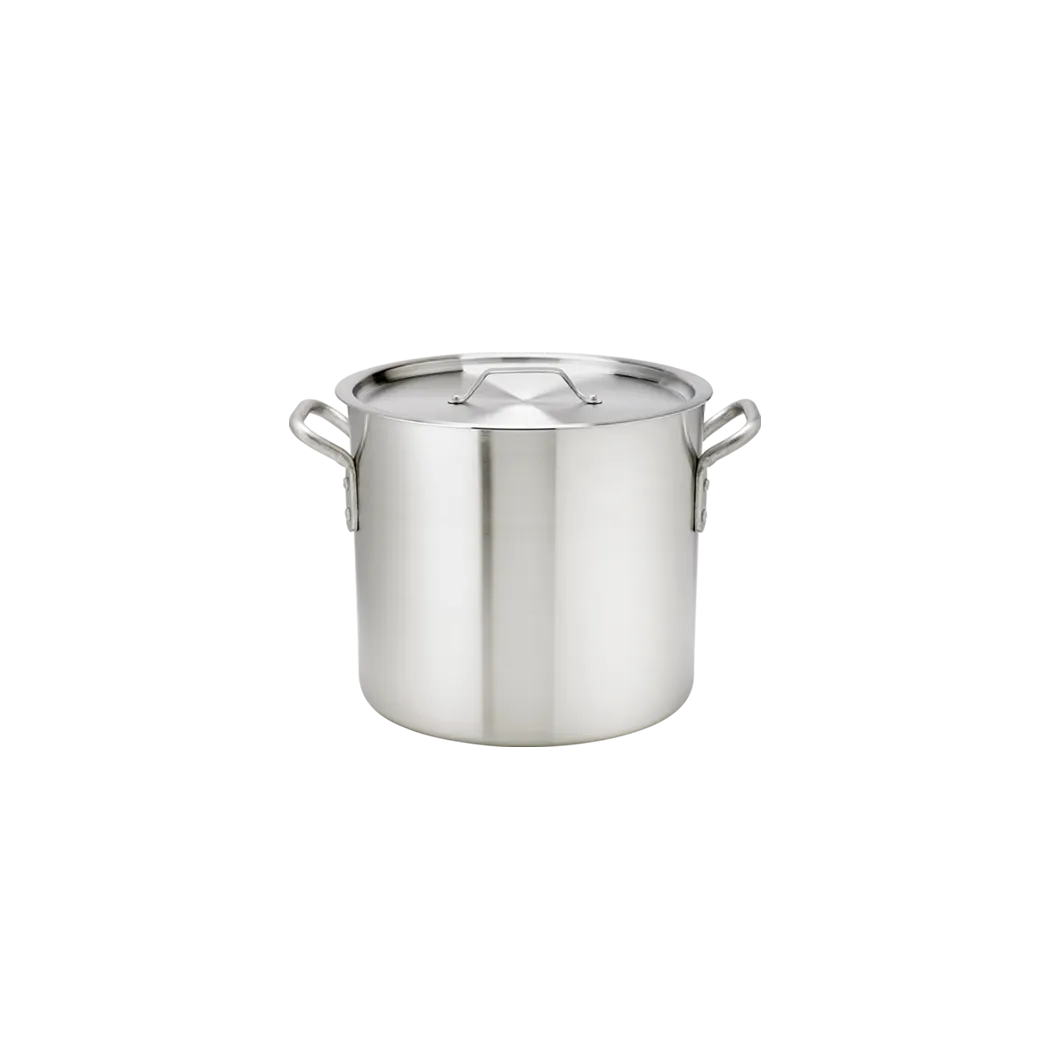 Introducing the Browne Foodservice 5813124 Cookware - THERMALLOY Aluminum, a must-have for any commercial restaurant. This 24qt Aluminum Stock Pot is NSF certified, ensuring the highest standards of quality and safety. With its durable construction, this pot is built to withstand the demands of a busy kitchen, making it perfect for commercial use. The THERMALLOY Aluminum material provides excellent heat conductivity, allowing for even and efficient cooking. Whether you're simmering soups, boiling pasta, or making large batches of sauces, this stock pot will deliver exceptional results every time. With its generous capacity and professional-grade performance, this stock pot is a valuable addition to any commercial kitchen. Ensure consistency and elevate your culinary creations with this top-of-the-line cookware.