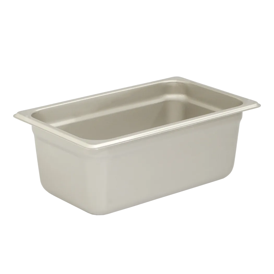 Craft wonders with professional-grade utensils with Browne Foodservice's 98144 Steam Pans & Inserts - Steam Pans 25g. Designed for commercial restaurant use, this 1/4-size anti-jam pan is 4" deep, providing ample space for your culinary creations. Made from durable 25-gauge, 18 S/S material, this pan ensures long-lasting performance in a busy kitchen environment. The NSF certification guarantees its compliance with strict hygiene and safety standards, giving you peace of mind. Whether you're steaming vegetables, cooking meats, or keeping food warm, this pan delivers exceptional heat distribution and retention. Its anti-jam feature allows for easy stacking and storage, optimizing your kitchen space. Elevate your culinary creations with Browne Foodservice's 98144 Steam Pans & Inserts - Steam Pans 25g.