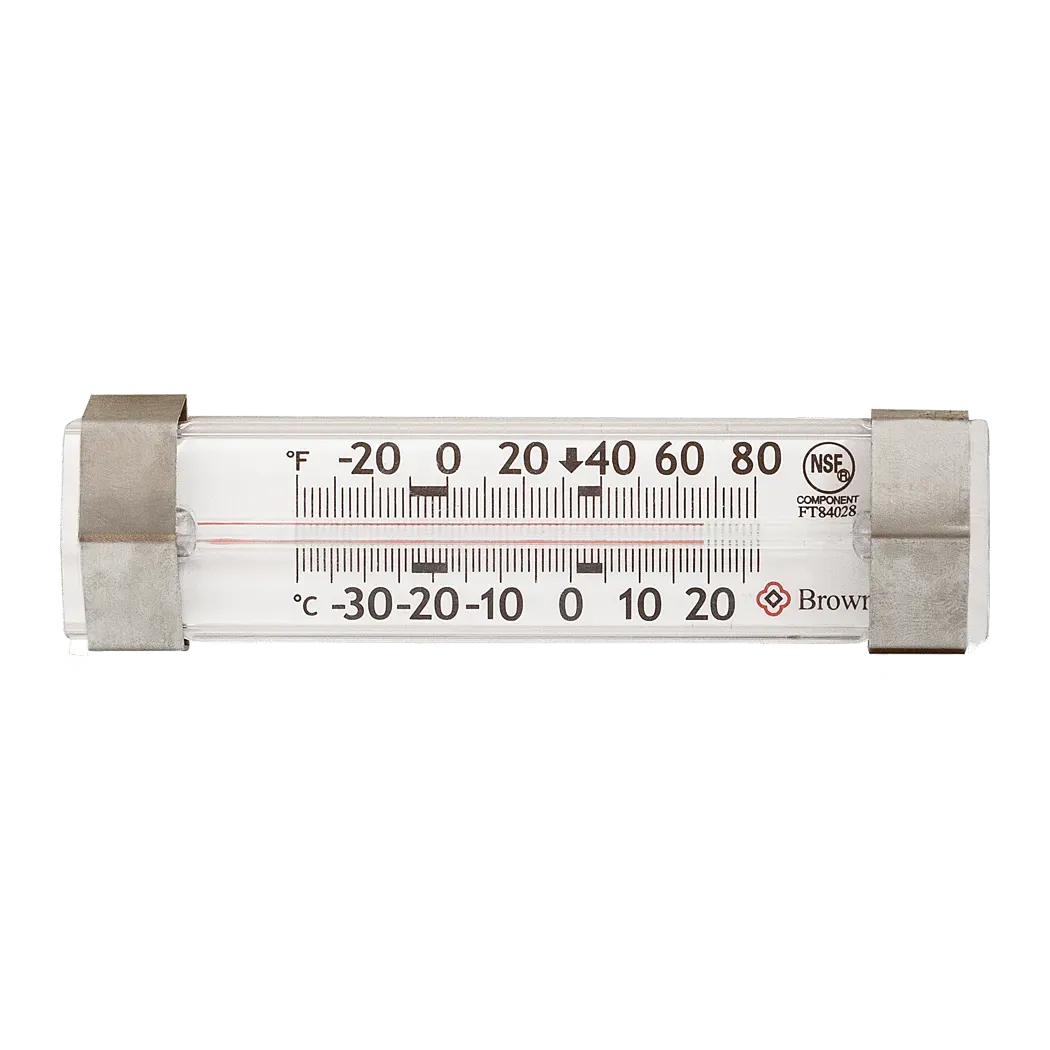 Stay ahead with competitive tools with Browne Foodservice's FT84028 Kitchen Equipment - Thermometers. This refrigeration and freezer thermometer is a must-have for any commercial restaurant. With a temperature range of -40°F to 80°F (-40°C to 27°C), this thermometer ensures that your food is stored at the optimal temperature to maintain freshness and prevent spoilage. Its compact size allows for easy placement in refrigerators and freezers, while its clear display makes it easy to read and monitor temperatures. Whether you're storing perishable ingredients or preserving pre-cooked meals, this thermometer is an essential tool for maintaining food safety and quality. Invest in Browne Foodservice's FT84028 Kitchen Equipment - Thermometers and keep your restaurant ahead of the competition.