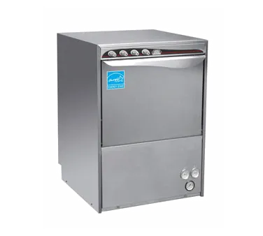 Upgrade your restaurant kitchen with the CMA Dishmachines UC 50E Undercounter Dishwasher. This high-quality dishwasher/glasswasher is designed to meet the demands of a busy commercial restaurant. With its compact size of 23-7/16"W x 24"D x 33-5/16"H, it can easily fit under your counter, saving valuable space in your kitchen. The UC 50E features a built-in booster heater with a safety thermostat, ensuring that your dishes are sanitized at the perfect temperature. It has a fully automatic cycle and can wash up to 30 racks per hour, making it ideal for high-volume establishments. The dishwasher also comes with built-in detergent and rinse chemical pumps, saving you time and effort. With its triple filtering protection system and stainless steel safety filters, you can be confident that your dishes will come out clean every time. The UC 50E is ENERGY STAR certified, meaning it is energy-efficient and will help you save on utility costs. Upgrade your restaurant kitchen today with the CMA Dishmachines UC 50E Undercounter Dishwasher.