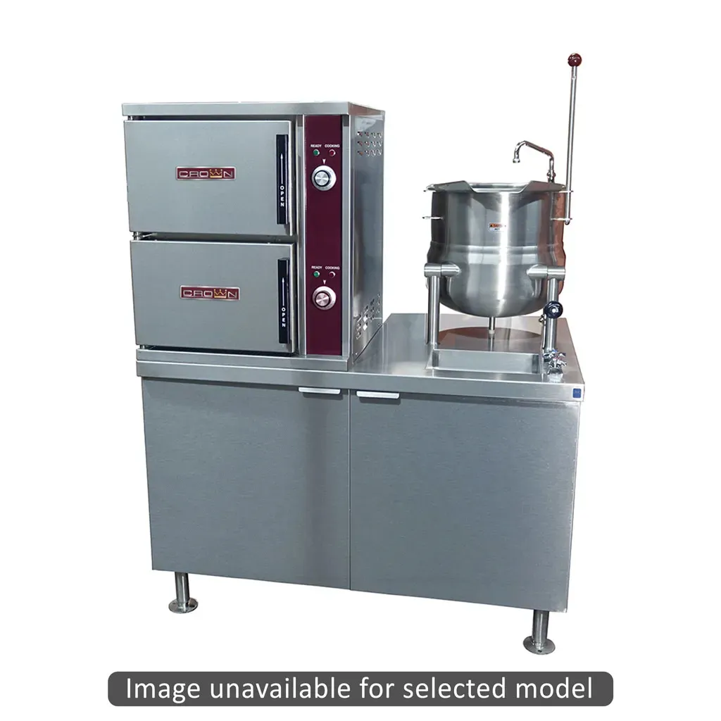 Innovative solutions for culinary mastery. Introducing the Crown Steam DCX-2-6 Direct Steam Convection Steamer. Designed for commercial restaurant use, this steamer is a game-changer in the kitchen. With its direct steam technology, it ensures fast and efficient cooking, allowing you to serve your customers with speed and precision. The 2-compartment design and 6-pan capacity provide ample space for simultaneous cooking, saving you time and energy. The 6-gallon kettle allows for large batch cooking, perfect for busy restaurants. The 44" cabinet offers convenient storage for your cooking essentials, keeping your kitchen organized and clutter-free. Powered by 115V, this steamer is easy to install and operate. Crown Steam, a trusted name in the industry, guarantees the quality and durability of this product. Elevate your culinary creations with the Crown Steam DCX-2-6 Direct Steam Convection Steamer.