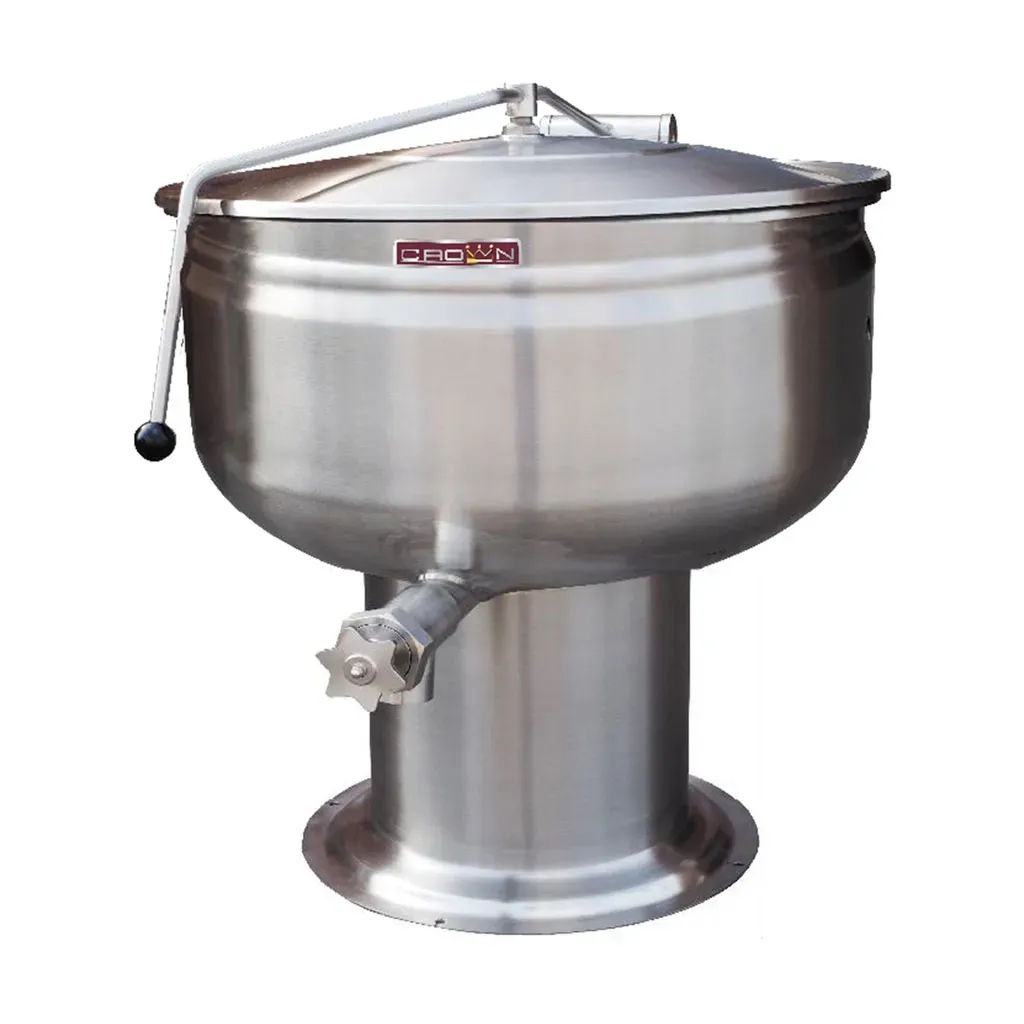 Set the standard with top-tier cooking gear. Introducing the Crown Steam DP-20F Direct Steam Kettle, a must-have for any commercial restaurant. This stationary pedestal kettle is designed to meet the demands of a busy kitchen, offering a generous 20-gallon capacity and a full jacket for even heat distribution. With its direct steam feature, this kettle ensures fast and efficient cooking, allowing you to prepare large quantities of soups, stews, and sauces in no time. The Crown Steam DP-20F is built to last, with a durable construction and a sleek design that will enhance the aesthetics of your kitchen. Whether you're running a bustling restaurant or a high-volume catering service, this direct steam kettle is the perfect addition to your culinary arsenal. Elevate your cooking game with the Crown Steam DP-20F Direct Steam Kettle.