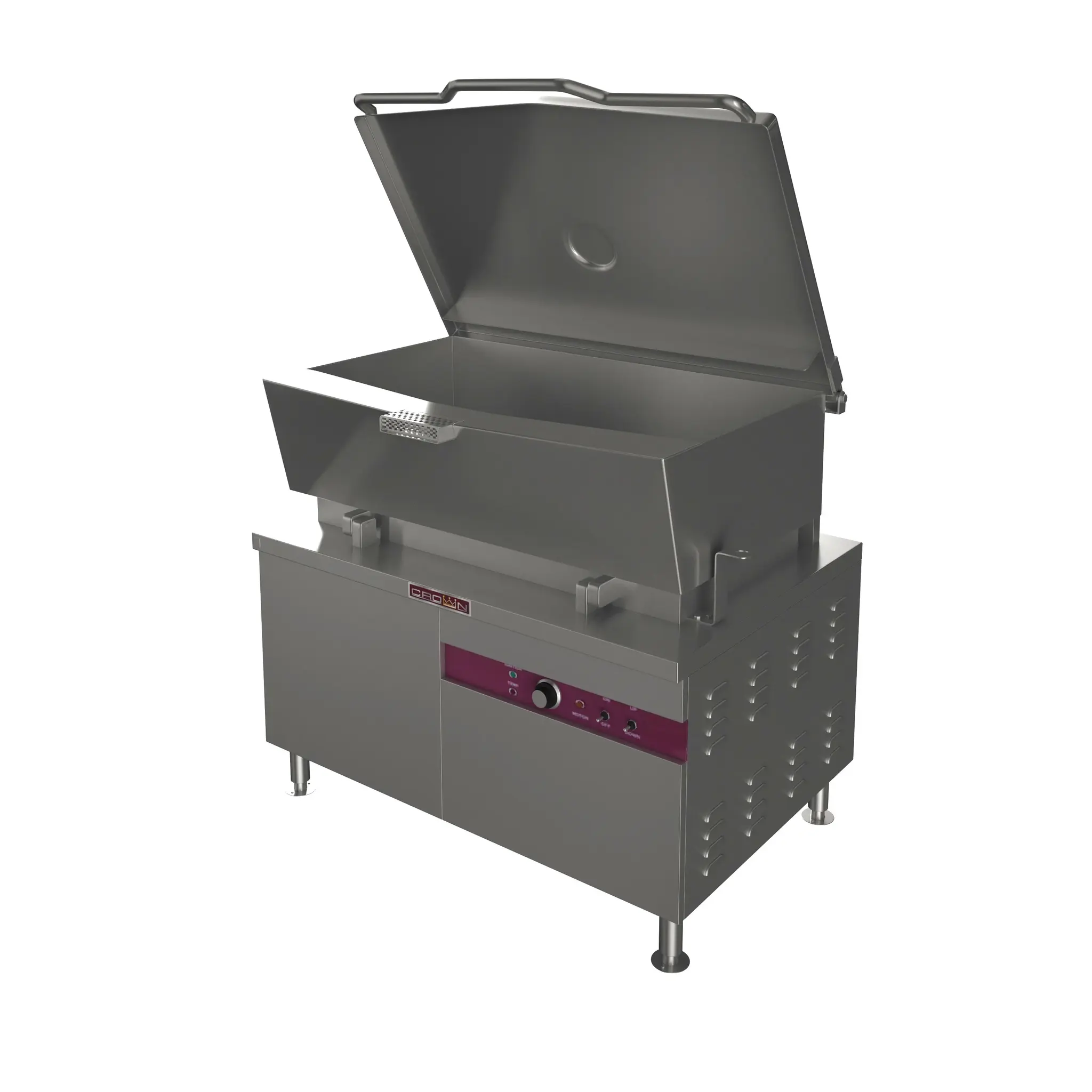 The EMTS-30, EMTS-40, and EMTS-60 tilt skillets are designed for high-performance cooking in demanding commercial kitchens. These units feature a spring-assisted, hinged stainless steel cover with a full-width handle, no-drip condensate guide, etched gallon markings, and a vent port with a swing cover, ensuring both functionality and durability. The pan has a sloped, front-hinged design for easy tilting and pour control, and it includes a removable pour strainer for added convenience. Constructed from 10-gauge 304 stainless steel with a #4 finish exterior and a polished interior, the pan also features coved corners that make cleaning a breeze. Heating is achieved through electric elements that are cast into a thick 1-3/8” (35mm) aluminum casting bolted to the underside of the pan, ensuring even heat distribution across the cooking surface for consistent and precise cooking. The unit is mounted on a heavy-duty welded frame with 6” (152mm) stainless steel legs and flanged feet, making it easy to secure the skillet to the floor for stability. The sleek design is enclosed in #4 finished type 304 stainless steel, with removable side panels and two stainless steel front cabinet doors for easy access to controls. The EMTS series offers precise temperature control, with cooking temperatures ranging from 160°F to 445°F (70°C - 230°C), allowing for flexibility in a variety of cooking applications. The hydraulic lift system, powered by a 1/2 HP electrical motor, ensures smooth and precise tilting action, making it easier to pour and handle ingredients. All the essential controls, including the temperature thermostat, temperature light, tilt switch, and high-limit thermostat, are mounted in the cabinet base for user-friendly operation and added safety. Built to withstand the rigors of a busy kitchen, the EMTS-30, EMTS-40, and EMTS-60 tilt skillets are the ideal choice for high-volume cooking environments where precision, reliability, and ease of use are paramount.