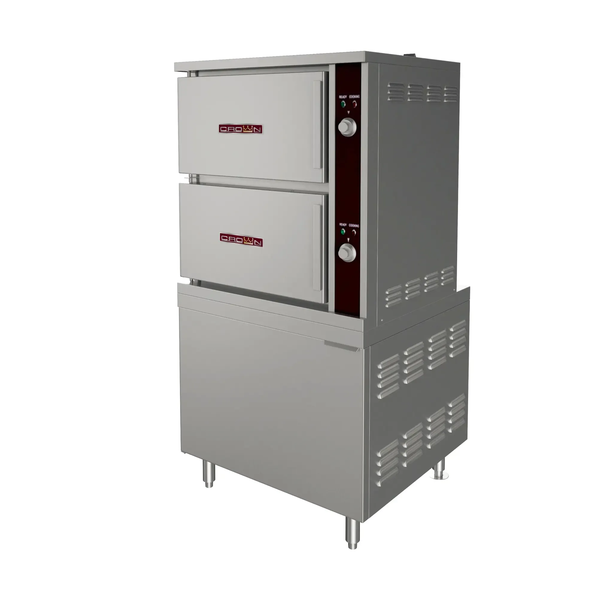 The GCX-2 and GCX-10 Convection Steamers are the ultimate solution for high-demand commercial kitchens seeking reliability and efficiency. Engineered with precision, these steamers are built to endure the rigors of fast-paced cooking environments, offering unparalleled performance. Featuring doors with a removable stainless steel inner liner and a full perimeter gasket seal, these units ensure maximum durability and ease of maintenance. The positive lock and seal mechanism provides a secure closure, while the stainless steel drip trough effectively collects condensate, keeping your workspace clean and organized even during peak hours. Crafted from fully welded type 316 stainless steel, each cooking chamber boasts exceptional corrosion resistance, complemented by full insulation for optimal heat retention. This design not only enhances cooking efficiency but also simplifies cleaning with removable stainless steel pan supports. Ease of operation is paramount. With a fully removable side panel for easy access to the control housing, each compartment is equipped with a 60-minute mechanical timer, ready pilot light, cooking pilot light, and an audible signal at the end of each cooking cycle. Safety is a top priority: steam flow is automatically interrupted when the compartment door is opened and promptly resumes once it's closed. Built on a sturdy cabinet base with a full perimeter angle frame, reinforced counter and boiler mountings, and a gas boiler with controls, these steamers are designed to withstand the demands of busy kitchens. The sleek stainless steel exterior is not just visually appealing; it features hinged doors with magnetic latches for a secure, tight fit. Supported by 6” (152 mm) stainless steel legs with adjustable flanged feet, these units offer easy installation and secure mounting. Equipped with standard boiler controls such as automatic water level control, a pressure gauge, water gauge glass, and safety features like high-limit pressure control and relief valves, these steamers promise safe and reliable operation. The inclusion of a cathodic protector guards against corrosion, ensuring longevity and durability. With features like a split water line, CSD-1 boiler controls, electronic ignition, and automatic blowdown, the GCX-2 and GCX-10 Convection Steamers provide a seamless cooking experience. Invest in the GCX-2 and GCX-10 Convection Steamers to elevate your kitchen’s performance and efficiency. Experience the difference that reliable, high-quality steam cooking can make in your culinary creations.