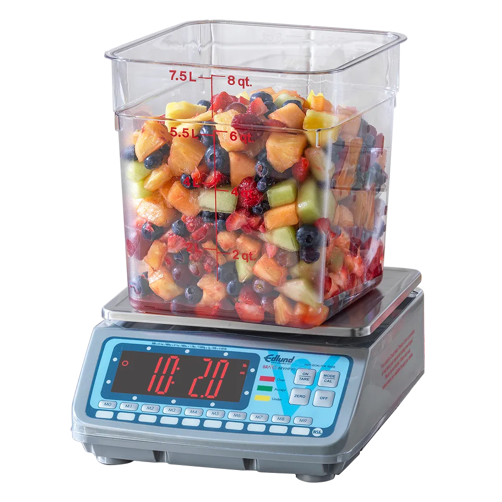 Equip for accuracy in culinary endeavors with the Edlund BRV-HP30 Digital Portion Scale. Designed for commercial restaurant use, this high-profile scale ensures precise measurements for portion control. With a capacity of 30 lb and a readability of 0.1 oz, this scale allows chefs to accurately weigh ingredients for consistent recipes. The removable stainless steel platform provides a spacious surface for weighing various items, while the large 7 segment RED LED display offers easy readability from a 45-degree viewing angle. The Under/Accept/Over feature with LED light indicators (Yellow/Green/Red) allows for quick visual assessment of portion accuracy. The ten memory buttons enable easy access to frequently used measurements, while the ClearShield protective cover ensures durability and easy cleaning. With its field recalibratable and auto-shut-off features, this scale is a reliable and efficient tool for any commercial kitchen.