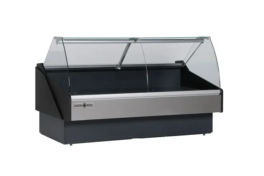 Enhance functionality with essential tools through the MVP KFM-CG-60-S Display Case, designed specifically for commercial restaurant use. With a spacious 60"W x 43-3/8"D x 47-1/4"H size, this case features a tilt-forward curved front tempered glass with an anti-condensate system, ensuring clear visibility and preventing fogging. The tempered glass sides and rear removable tempered sliding glass doors provide easy access and maintenance. The LED interior lighting illuminates your products, while the stainless steel interior ensures durability and hygiene. The digital controller allows for precise temperature control, while the top sill and rear work shelf provide additional storage space. With adjustable feet and self-contained refrigeration, this case is both convenient and efficient. Trust MVP for quality and reliability.