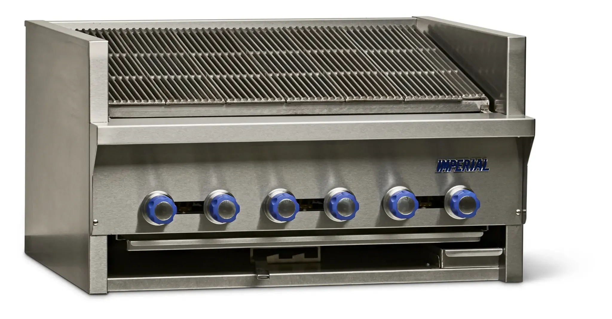 Invest in superior quality with the Imperial, IAB-60, Charbroiler, Gas, Countertop. This steakhouse charbroiler is designed to meet the demands of a busy commercial restaurant. With its 60" size and (10) stainless steel burners, it provides ample cooking space and powerful heat output of 200,000 BTU. The slanted (3) position cast iron top grate allows for easy adjustment and optimal cooking results. The full-width grease gutter and removable grease can make cleaning a breeze, promoting a hygienic cooking environment. Made with stainless steel front, sides, and landing ledge, this charbroiler is not only durable but also adds a sleek and professional look to your kitchen. Certified by cETLus, ETL, and NSF, you can trust the quality and safety of this Imperial charbroiler. Upgrade your restaurant's cooking capabilities with the Imperial, IAB-60, Charbroiler, Gas, Countertop.