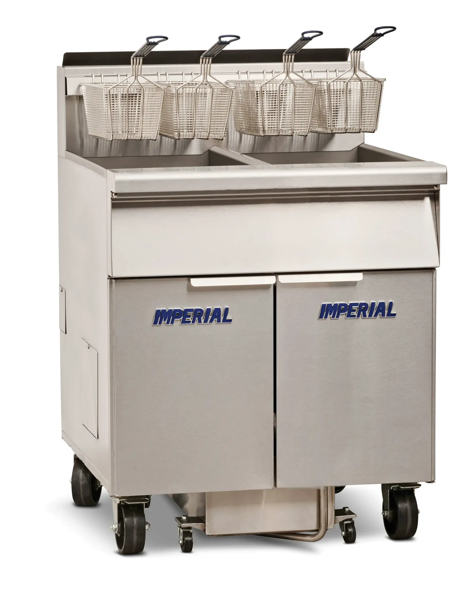Kitchen innovation at its best, the Imperial IFSSP275EU Fryer is a game-changer for commercial restaurants. With its multiple battery design, this electric floor model fryer offers a whopping 75lb. capacity in each frypot, allowing you to cook large quantities of delicious food in no time. The tilt-up elements make cleaning a breeze, while the built-in space saver filter system ensures that your oil stays clean and fresh for longer. Equipped with a powerful 5.5 GPM roller pump and a snap action thermostat, this fryer delivers consistent and precise results every time. The stainless steel construction of the frypot, front, and sides ensures durability and easy maintenance. With the included joiner strips and filter starter kit, you'll have everything you need to get started. Trust Imperial for top-quality kitchen equipment that will take your restaurant to new heights.