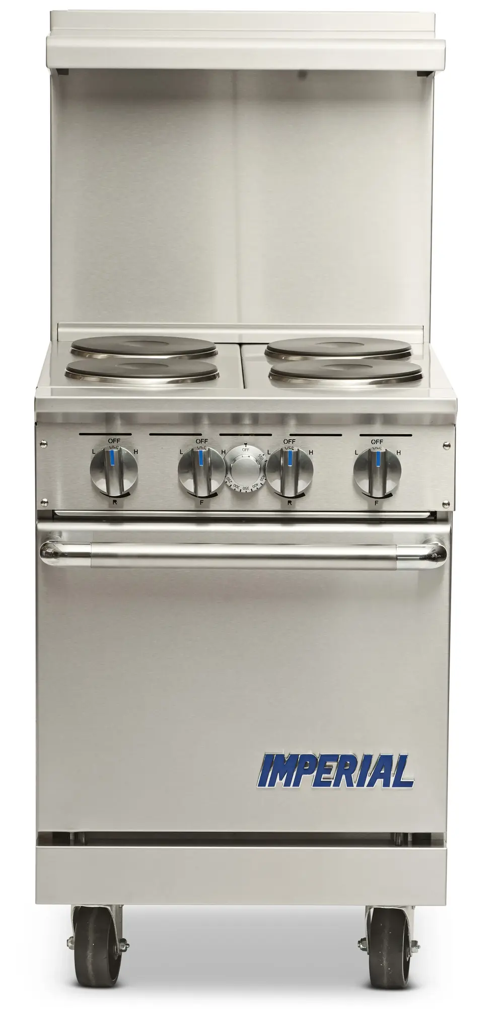 Master your restaurant's kitchen with the Imperial IR-4-E Range. This 24" electric restaurant range is designed to meet the demands of a busy commercial kitchen. With four round elements and a solid top, you have the flexibility to cook a variety of dishes simultaneously. The space saver oven comes with a chrome rack and a splatter screen, ensuring efficient and clean cooking. The infinite heat controls allow for precise temperature adjustments, giving you full control over your culinary creations. The porcelain oven interior is not only easy to clean but also provides excellent heat retention. Made with a stainless steel front, sides, backguard, landing ledge, and kick plate, this range is built to withstand the rigors of a commercial kitchen. The adjustable feet and 6" legs provide stability and flexibility in any kitchen layout. Trust the Imperial IR-4-E Range to deliver exceptional performance and durability in your restaurant.