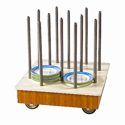 Maximize convenience with the efficient Lakeside Manufacturing 402 Cart/Dolly for dishes. This poker chip style dolly is designed to make your restaurant operations smoother and more efficient. With dimensions of 28"W x 28"L x 31-1/4"H, it can accommodate dishes up to 11"W in size. The stainless steel tubing plate stacking guides ensure secure and stable stacking, while the HDPE platform provides durability and easy cleaning. Equipped with four heavy-duty 4" casters with cushion thread wheels, this dolly can effortlessly maneuver through your restaurant's busy environment. Made in the USA by Lakeside Manufacturing, this dish display dolly is built to last and withstand the demands of a commercial restaurant. Whether you need to transport dishes from the kitchen to the dining area or store them safely, this Lakeside Manufacturing 402 Cart/Dolly is the perfect solution.