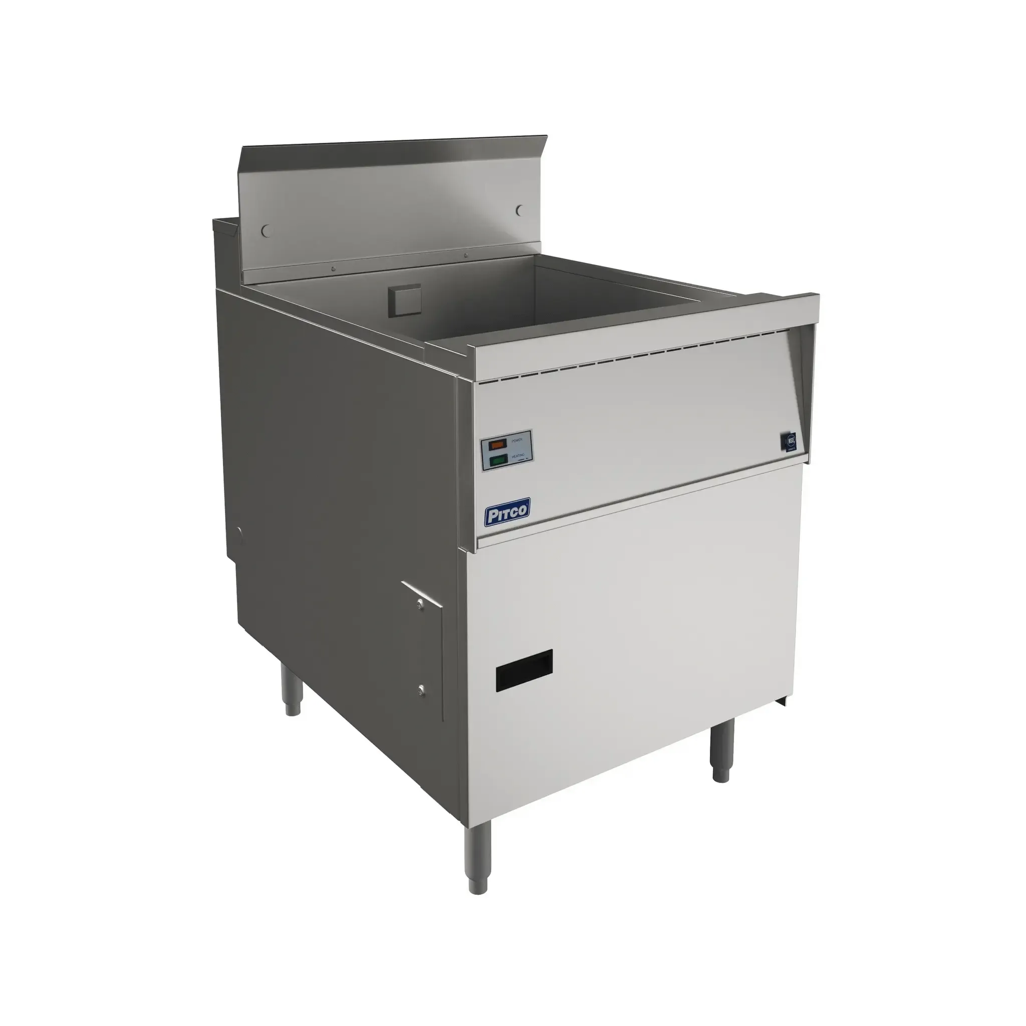 Versatile flat bottom cooking design saves space under optional filter system. Ideal for cooking wet batter products. Maunal gas shutoff and rear gas connection. Larger cooking area with 24 inch width Solid State Control with melt cycle and boil out options.