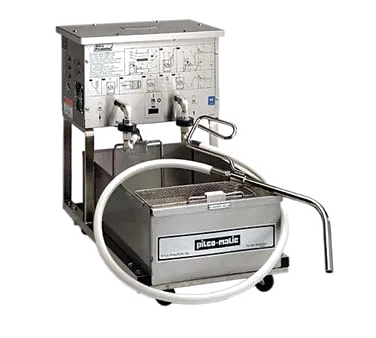 Deliver food perfection with the Pitco Frialator P14 Fryer Filter. This mobile fryer filter is designed to meet the needs of commercial restaurants, ensuring that your fried foods are cooked to perfection every time. With a 55 lb. oil capacity and a low-profile design, this fryer filter is perfect for use with all 7.12 and 14 size fryers. The 18 gauge stainless steel lift-cover provides durability and easy access for maintenance and cleaning. The Pitco Frialator P14 Fryer Filter also comes with a pump and hose assembly, making it easy to filter and transfer oil. This fryer filter is CSA, NSF, UL, and CE certified, guaranteeing its quality and safety. Upgrade your restaurant's frying system with the Pitco Frialator P14 Fryer Filter and experience the difference in taste and efficiency.