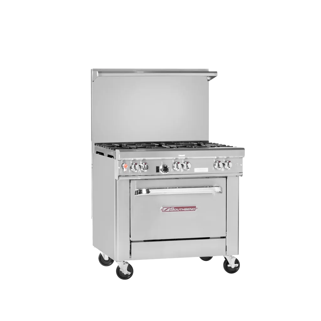 Maximize your food service potential with the Southbend, 4364C-1G, Range, 36" Restaurant, Gas. This ultimate restaurant range is designed to meet the demands of a busy commercial kitchen. With its powerful 150,000 BTU gas burners, including two star/sauté burners in the front and two non-clog burners, you can easily cook a variety of dishes simultaneously. The 12" griddle on the left side adds versatility to your menu options. The standing pilot ensures quick and reliable ignition, while the stainless steel construction of the front, sides, shelf, and adjustable legs ensures durability and easy cleaning. The 22-1/2" flue riser with a shelf provides additional storage space for your cooking essentials. This range is cCSAus, CSA Flame, CSA Star, and NSF certified, guaranteeing its safety and quality. Trust Southbend to deliver exceptional performance and reliability in your commercial kitchen.