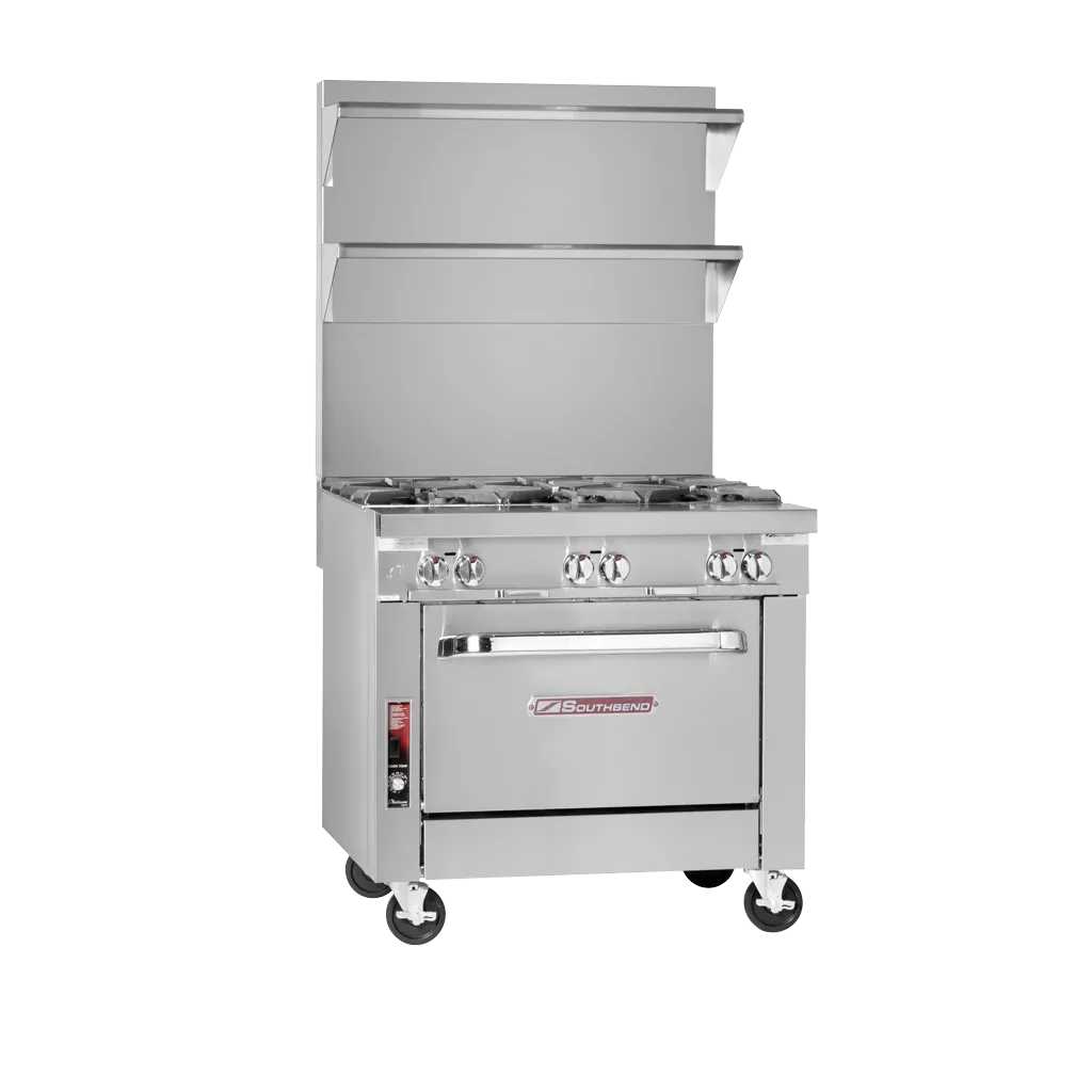 Streamline your restaurant cooking operations with the Southbend P36A-GRAD Range. This heavy-duty gas range is designed to meet the demands of a busy commercial kitchen. With its 36" graduated hot top and manual controls, you can easily adjust the heat to suit your cooking needs. The battery spark ignition ensures quick and reliable start-ups, saving you time and effort. The range also includes a convection oven with three racks, allowing you to bake multiple dishes simultaneously. Made with a stainless steel front, sides, rear, and exterior bottom, this range is not only durable but also easy to clean. The 6" adjustable legs provide stability and flexibility in any kitchen layout. With a powerful 107,000 BTU, this range delivers exceptional performance and efficiency. Trust Southbend, a reputable vendor in the industry, to provide you with a high-quality range that will enhance your restaurant's cooking capabilities.