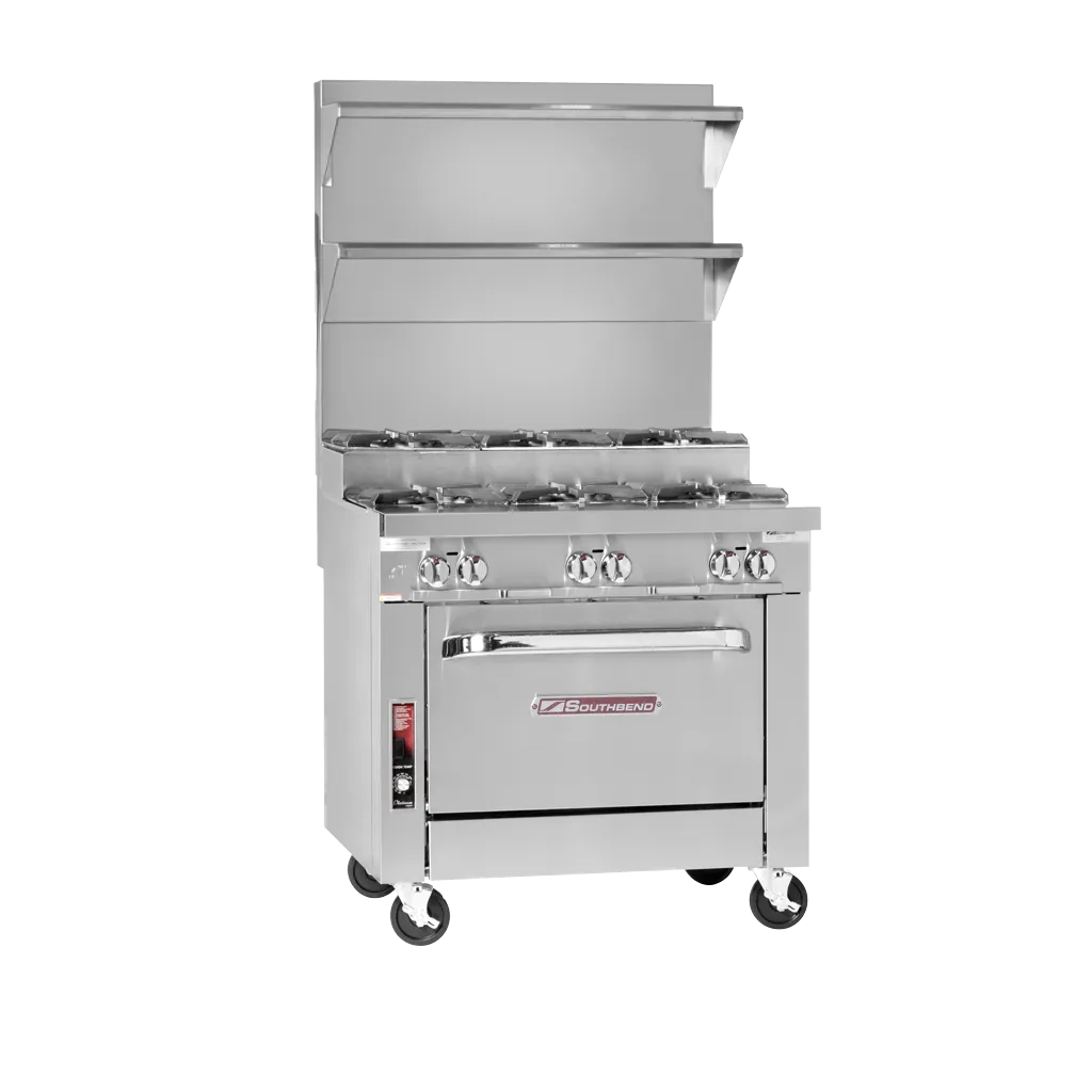 Elevate your dining experience with the Southbend P36C-BBB-SU Range, a heavy-duty gas range designed to meet the demands of a commercial restaurant. This platinum range features three 35,000 BTU open burners and three 40,000 BTU step-up open burners, providing precise heat control for all your cooking needs. The manual controls allow chefs to easily adjust the temperature, ensuring consistent and delicious results every time. The stainless steel front, sides, and exterior bottom not only give this range a sleek and professional look but also make it durable and easy to clean. With a 210,000 BTU output, this range delivers powerful performance, allowing you to cook large quantities of food quickly and efficiently. The included cabinet base provides convenient storage for your cooking essentials. Trust Southbend, a reputable vendor known for their quality products, to enhance your restaurant's kitchen with this exceptional gas range.