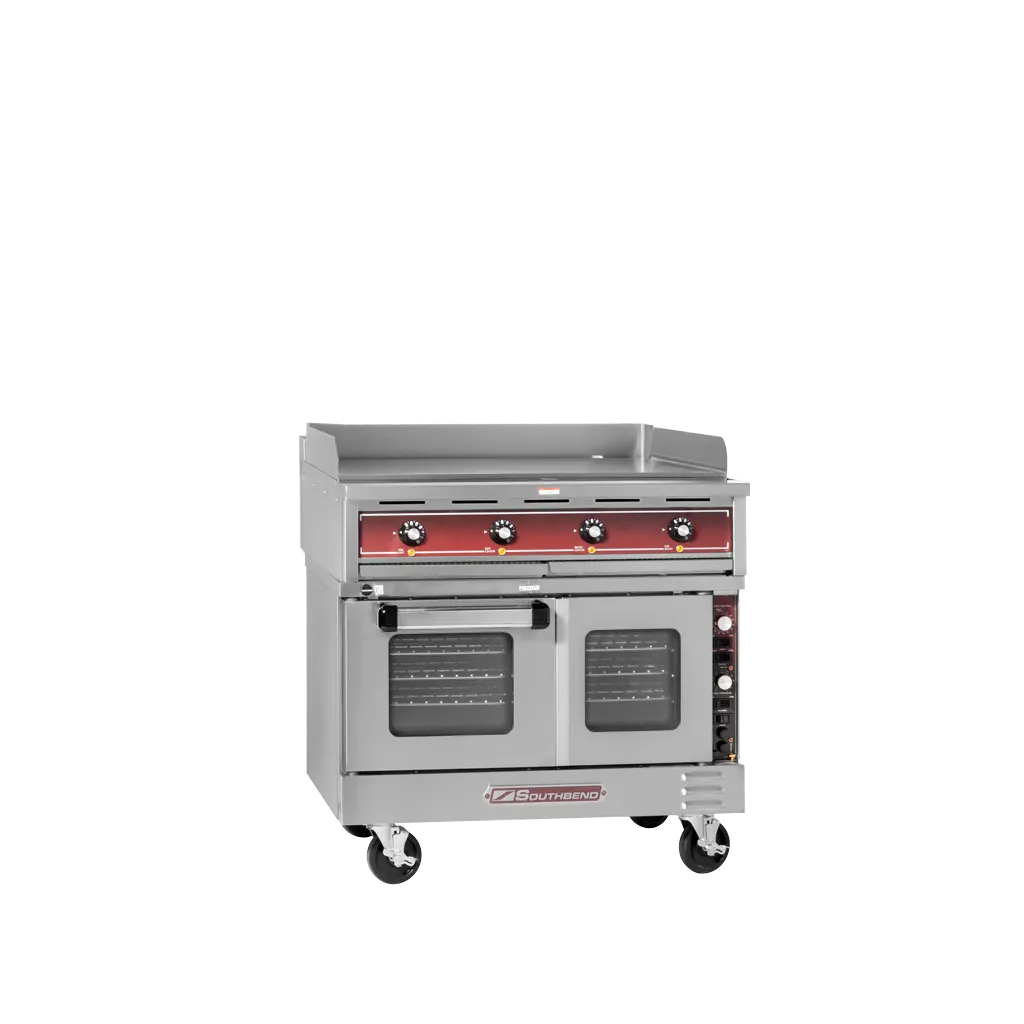 Unleash your inner chef with the Southbend SE36T-TTB Range, a heavy-duty electric appliance designed to elevate your culinary creations. This 36" range boasts a powerful performance that is perfect for commercial restaurant use. Equipped with two round hotplates and a 24" griddle, this range offers versatility and efficiency in cooking. The thermostatic controls and 3-heat switch allow for precise temperature adjustments, ensuring consistent and delicious results every time. The TruVection oven, complete with three racks, provides ample space for baking and roasting. Made with a stainless steel front, sides, top, and oven lining, this range is not only durable but also easy to clean. With its cETLus and ETL-Sanitation certifications, you can trust in the quality and safety of this Southbend range. Upgrade your restaurant kitchen with the Southbend SE36T-TTB Range and experience the difference in performance and reliability.