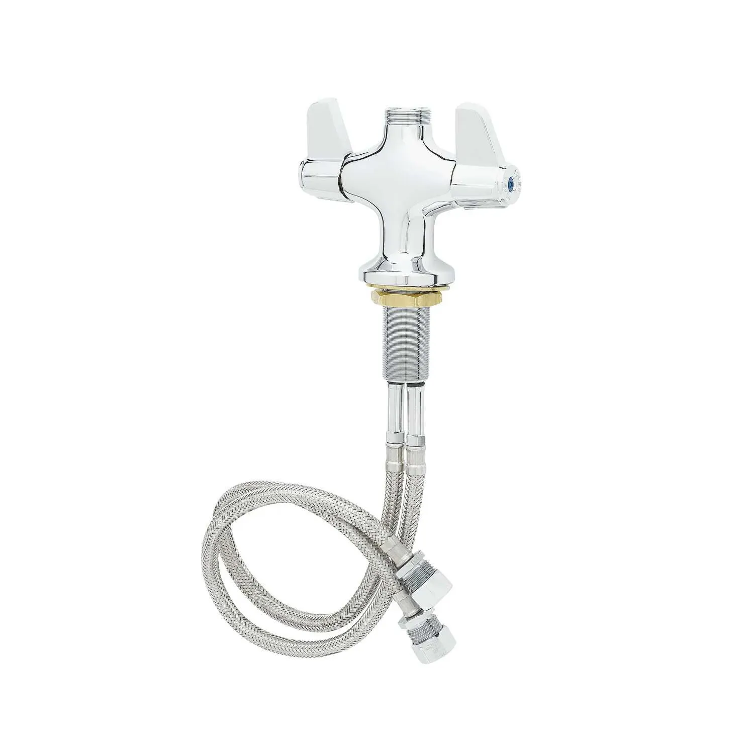 Manage Equipment Accessories with T&S Brass, 5F-2SLX00, Faucet, Deck Mount. This single hole deck mount mixing faucet is a must-have for any commercial restaurant. With its polished chrome plated brass body, it not only adds a touch of elegance to your kitchen but also ensures durability and longevity. The swivel outlet accepts equip swivel goosenecks, providing flexibility and convenience in your workspace. The quarter-turn ceramic cartridges make it easy to control the water flow and temperature, allowing for precise adjustments. Designed by T&S Brass, a trusted vendor in the industry, this faucet is built to withstand the demands of a busy restaurant kitchen. Whether you're washing dishes, filling pots, or rinsing produce, this deck mount faucet will streamline your workflow and enhance efficiency. Invest in the T&S Brass 5F-2SLX00 and experience the difference it can make in your restaurant's operations.