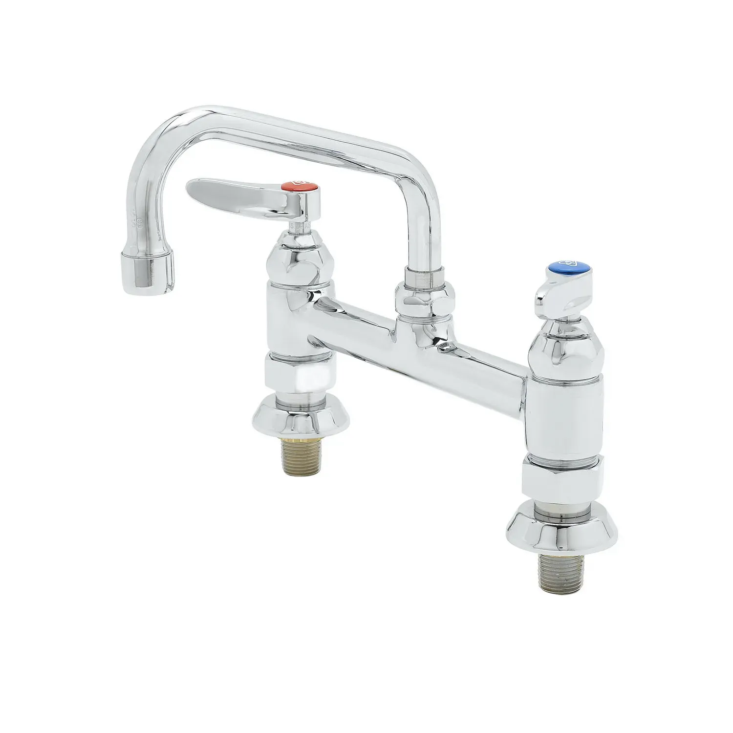 Enhance System Reliability with the T&S Brass B-0222-EE Deck Mount Faucet. Designed specifically for commercial restaurant use, this double pantry faucet is a reliable and efficient choice for any kitchen. With its 8" centers and 6" swing nozzle, this faucet provides easy access to water at the perfect temperature and pressure. The polished chrome plated brass body not only adds a sleek and professional look to your kitchen but also ensures durability and longevity. The lock washer provided allows for a rigid application, ensuring that the faucet stays securely in place. With T&S Brass, you can trust that you are getting a high-quality product that will enhance the reliability of your restaurant's water system. Upgrade your kitchen with the T&S Brass B-0222-EE Deck Mount Faucet and experience the difference in performance and durability.