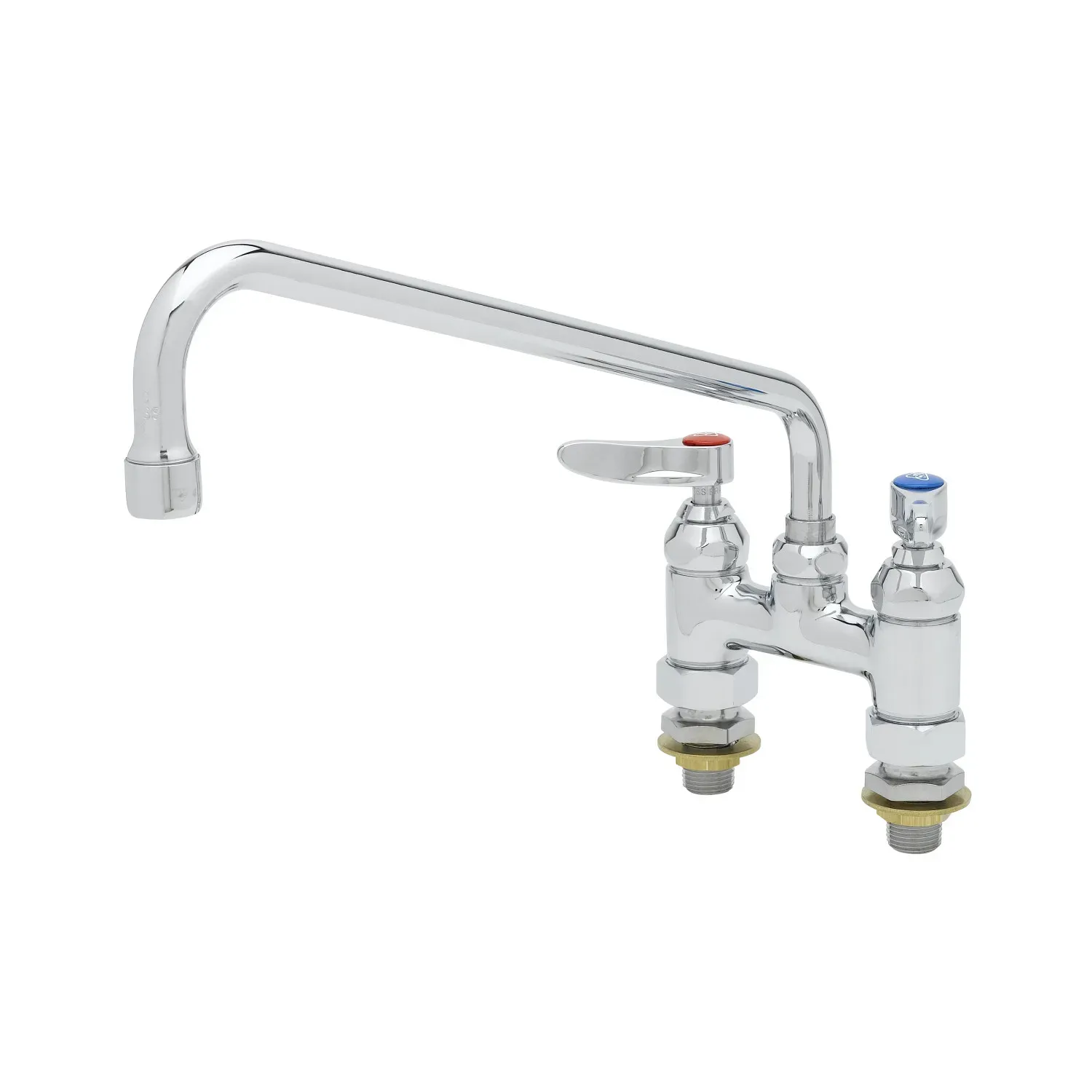 Secure Equipment Functionality with the T&S Brass B-0225-CC Deck Mount Faucet. Designed specifically for commercial restaurant use, this double pantry faucet ensures reliable performance and durability. With a 12" swing nozzle and 4" centers, it provides convenient access to water for various tasks in the kitchen. The 1/2" NPT male inlet allows for easy installation, while the pressure range of 20 - 125 psi and temperature range of 40°F - 140°F ensure optimal operation in any kitchen environment. With a flow rate of 17.90 GPM at 60 psi, this faucet delivers a steady and powerful stream of water, making it perfect for washing dishes, rinsing produce, and filling large pots. Trust in T&S Brass, a reputable vendor known for their high-quality products. Upgrade your restaurant's kitchen with the T&S Brass B-0225-CC Deck Mount Faucet and experience enhanced efficiency and functionality.