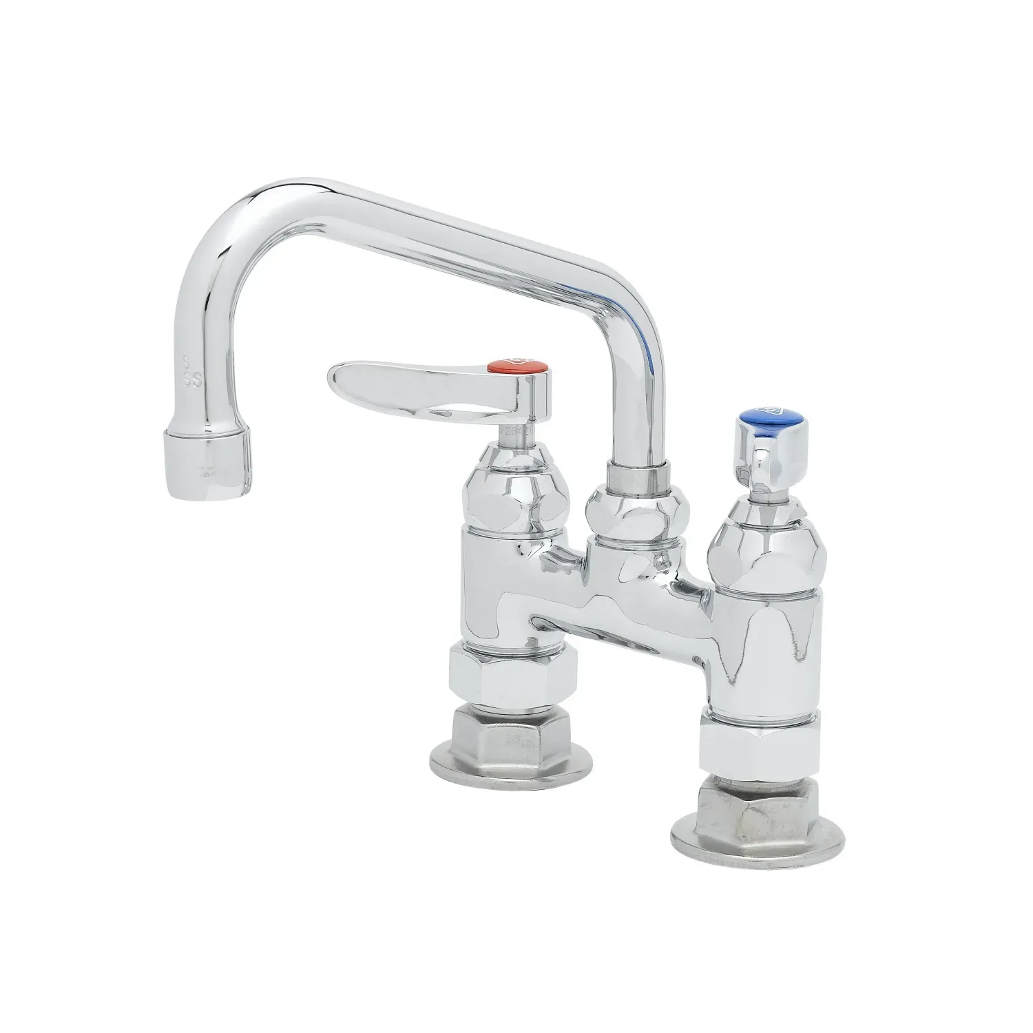Ensure System Integrity with the T&S Brass B-0228 Deck Mount Faucet. Designed specifically for commercial restaurant use, this double pantry faucet is a reliable and essential addition to any kitchen. With a 4" deck mount and a polished chrome plated brass body, this faucet not only provides a sleek and professional look but also ensures durability and longevity. The 6" swing nozzle allows for easy maneuverability, making it convenient to fill large pots and pans. The lock washer provided ensures a rigid application, preventing any leaks or malfunctions. Whether you're running a bustling restaurant or a busy catering service, the T&S Brass B-0228 Deck Mount Faucet is the perfect choice to maintain system integrity and ensure smooth operations in your commercial kitchen.