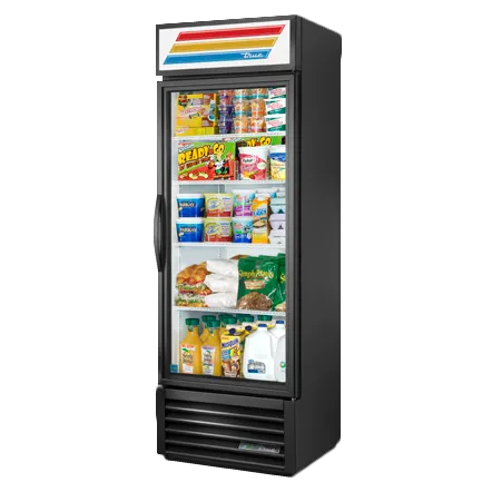 Culinary excellence in every dish begins with the True Manufacturing GDM-19T-HC~TSL01 Refrigerator Merchandiser. This one-section refrigerated merchandiser is designed to meet the demands of a commercial restaurant, ensuring your ingredients stay fresh and easily accessible. With its bottom-mounted self-contained refrigeration system, this True standard look version 01 unit provides efficient cooling while maximizing storage space. The low-E thermal glass hinged door not only showcases your products but also helps to maintain the ideal temperature inside. LED interior lights illuminate the interior, making it easy to locate items even in low-light conditions. The powder-coated steel exterior and white interior with a stainless steel floor offer durability and easy cleaning. This ENERGY STAR certified merchandiser runs on R290 Hydrocarbon refrigerant, ensuring eco-friendly operation. With its 1/3 HP compressor and 4 shelves, this True Manufacturing Refrigerator Merchandiser is a reliable and efficient addition to any commercial kitchen.