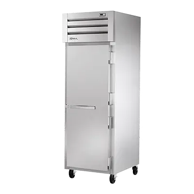 Equip your kitchen for success with the True Manufacturing STR1H-1S Heated Cabinet Reach-In. This top-of-the-line commercial appliance is designed to meet the demands of a busy restaurant kitchen. With its stainless steel construction, including a stainless steel door with a lock and cam-lift hinges, this heated cabinet is built to withstand the rigors of a commercial environment. The digital temperature control ensures precise temperature management, while the interior kit provides ample storage space for your food items. The 5" castors make it easy to move the cabinet around your kitchen as needed. With a power rating of 1.5 kW and compatibility with 208-230v/60/1-ph power supply, this heated cabinet is both efficient and reliable. Trust True Manufacturing, a reputable vendor known for their high-quality products made in the USA. Upgrade your kitchen with the True Manufacturing STR1H-1S Heated Cabinet Reach-In and experience the convenience and durability it offers.