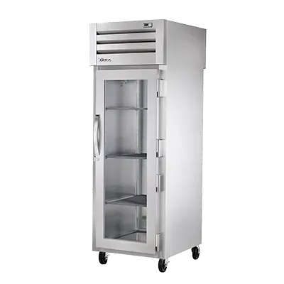 Master the art of flavor with the True Manufacturing STR1HPT-1G-1S Heated Cabinet. This pass-thru cabinet is designed to meet the needs of commercial restaurants, ensuring that your dishes are served at the perfect temperature every time. The cabinet features a glass door front and a stainless steel door rear, both equipped with locks for added security. The cam-lift hinges make opening and closing the doors a breeze. With its digital temperature control, you can easily adjust and monitor the temperature inside the cabinet. The stainless steel construction of the cabinet ensures durability and easy cleaning, while the 5" castors provide mobility. Made in the USA, this UL EPH Classified cabinet is a reliable and efficient addition to any commercial kitchen. Elevate your culinary creations with the True Manufacturing STR1HPT-1G-1S Heated Cabinet.
