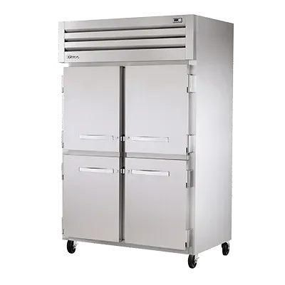 Enhance the heart of your restaurant with the True Manufacturing STR2H-4HS Heated Cabinet Reach-In. This top-of-the-line commercial appliance is designed to meet the demanding needs of a busy restaurant kitchen. With its four stainless steel half doors, complete with locks and cam-lift hinges, you can easily access your stored items while ensuring their security. The digital temperature control allows you to precisely adjust the interior temperature, ensuring that your food stays at the perfect temperature for serving. The stainless steel front, sides, and interior not only provide durability but also make cleaning a breeze. Equipped with 5" castors, this heated cabinet is easy to move around your kitchen as needed. With a 3.0 kW power capacity and the ability to be hardwired, this cabinet is ready to handle the demands of a commercial kitchen. Trust in True Manufacturing, a reputable vendor known for their high-quality products made in the USA. Upgrade your restaurant's storage capabilities with the True Manufacturing STR2H-4HS Heated Cabinet Reach-In.