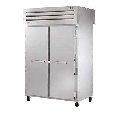 Unleash gastronomic brilliance with the True Manufacturing STR2HPT-2S-2S Heated Cabinet, Pass-Thru. This top-of-the-line commercial-grade cabinet is designed to meet the demanding needs of any restaurant kitchen. With its two-section design and stainless steel doors, both front and rear, this cabinet offers easy access and secure storage. The cam-lift hinges ensure smooth operation, while the digital temperature control allows for precise temperature management. The stainless steel construction not only provides durability but also adds a sleek and professional look to any kitchen. The True Manufacturing STR2HPT-2S-2S Heated Cabinet is equipped with two interior kits, providing ample space for storing and organizing your culinary creations. With its 5" castors, this cabinet is easy to move and position wherever it's needed. Made in the USA and UL EPH Classified, this cabinet is a reliable and efficient addition to any commercial restaurant.