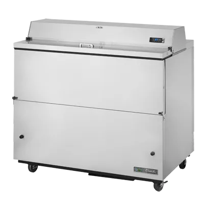 Upgrade your restaurant kitchen with the True Manufacturing TMC-49-S-HC Milk Cooler / Station. This mobile milk cooler is perfect for commercial restaurant use, offering convenience and efficiency. With its forced-air system, it ensures consistent cooling throughout, keeping your milk at the optimal temperature of 33 - 38F. The stainless steel drop front and hold-open flip-up lids make it easy to access and load up to 12 crates of milk. The lock feature provides added security, while the digital thermometer allows for precise temperature monitoring. The stainless exterior and aluminum interior with a stainless steel floor ensure durability and easy cleaning. The three heavy-duty floor racks provide ample storage space, and the 4" castors allow for easy mobility. Made in the USA and ENERGY STAR certified, this milk cooler is not only reliable but also energy-efficient. Upgrade your restaurant kitchen today with the True Manufacturing TMC-49-S-HC Milk Cooler / Station.