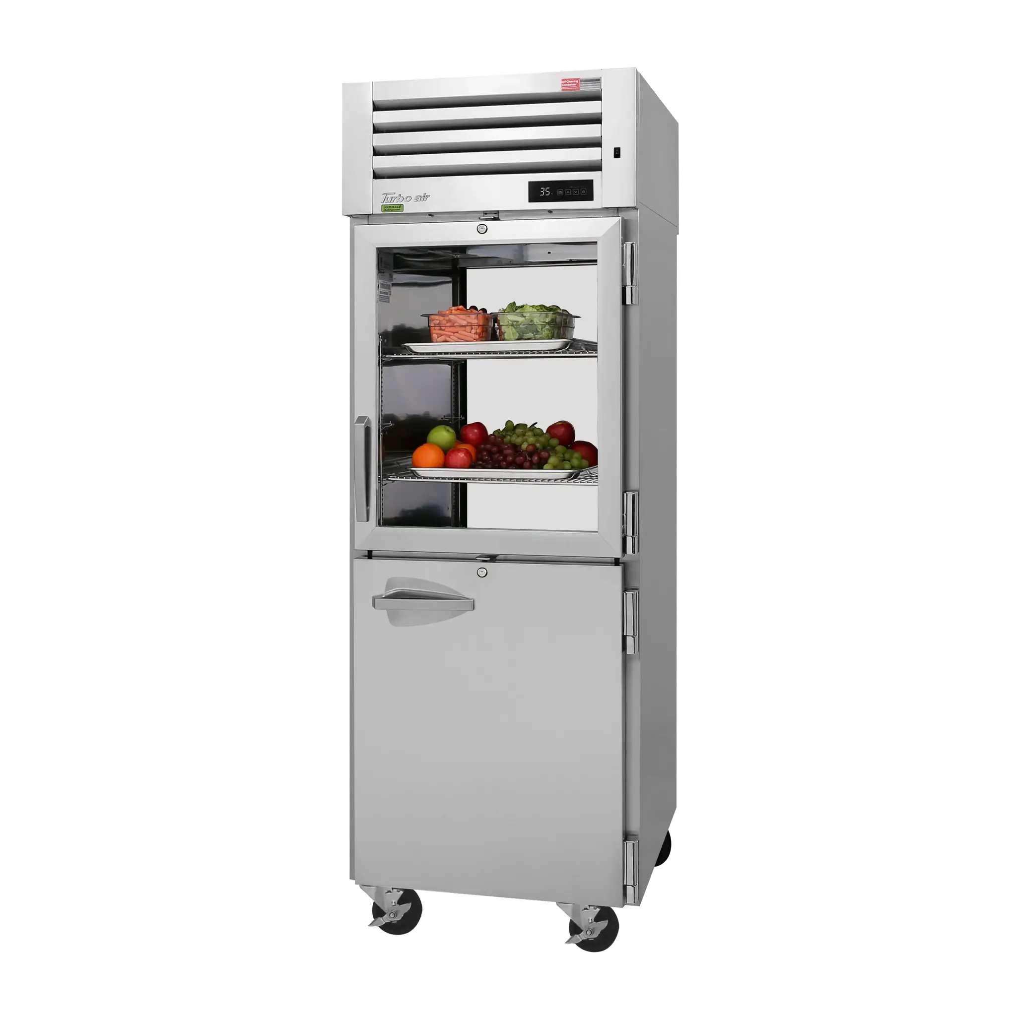 Take your kitchen to the next level with the Turbo Air PRO-26R-GSH-PT-N Pass-Thru Refrigerator. Designed for commercial restaurant use, this PRO Series refrigerator offers a spacious 25 cu. ft. capacity, providing ample storage space for your ingredients and prepared dishes. The exterior LED digital temperature controller ensures precise temperature control, while the door-open alarm beeps to alert you if the doors are left open, helping to maintain food safety standards. The self-diagnostic monitoring system and automatic fan motor delays further enhance the refrigerator's efficiency and performance. With its extra deep design and hinged front and rear half doors (one glass/one solid) with locks, you can easily access and organize your items. The heavy-duty hinges and handles are lifetime guaranteed, ensuring durability in a busy kitchen environment. Made in the USA with top-quality materials, this Turbo Air pass-thru refrigerator is a reliable and efficient addition to any commercial kitchen.