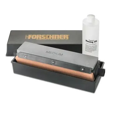 Efficiency for the Modern Kitchen with Victorinox Swiss Army, 4.3391.7, Knife, Sharpener Honing System. This professional-grade sharpening system is a must-have for any commercial restaurant. With its 3-way sharpening capabilities, it ensures that your knives are always razor-sharp, allowing for precise and effortless cutting. The set includes 1 pint of honing oil, providing the perfect lubrication for a smooth sharpening process. Designed by Victorinox Swiss Army, a trusted name in the industry, this honing system guarantees durability and reliability. Its compact size makes it easy to store and transport, making it ideal for busy kitchens. Whether you're a chef or a restaurant owner, this sharpening system will enhance your kitchen's efficiency and productivity. Invest in the Victorinox Swiss Army, 4.3391.7, Knife, Sharpener Honing System and experience the difference it makes in your culinary endeavors.