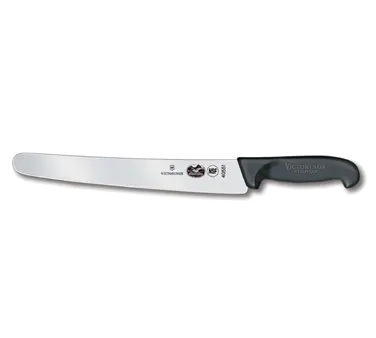 Equip Your Kitchen for Culinary Perfection with the Victorinox Swiss Army, 5.2903.26, Knife, Slicer. This high-quality knife is a must-have for any commercial restaurant. With its 10-1/4" curved blade and round tip, it effortlessly slices through meats, fruits, and vegetables with precision and ease. The straight edge ensures clean and even cuts, while the black Fibrox Pro handle provides a comfortable and secure grip. Made from high carbon stainless steel, this knife is durable and long-lasting, perfect for the demands of a busy kitchen. NSF certified, it meets the highest standards of safety and hygiene. Whether you're slicing roast beef for sandwiches or carving a turkey for a special event, this Victorinox Swiss Army knife is the ultimate tool for achieving professional results. Upgrade your kitchen arsenal today and experience the difference it makes in your culinary creations.
