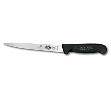 Equip Your Kitchen for Culinary Perfection with the Victorinox Swiss Army, 5.3813.18-X1 Fillet Knife. This professional-grade knife is designed to meet the demands of commercial restaurant use, making it an essential tool for any chef or kitchen staff. The 7" straight, flexible blade allows for precise filleting of fish and other delicate meats, ensuring clean and uniform cuts every time. The black Fibrox Pro handle provides a comfortable and slip-resistant grip, allowing for extended use without fatigue. Packaged in a convenient clamshell/peggable package, this knife is easy to store and access in a busy kitchen environment. With NSF certification, you can trust in the quality and safety of this knife. Upgrade your kitchen arsenal with the Victorinox Swiss Army Fillet Knife and experience the difference it makes in your culinary creations.