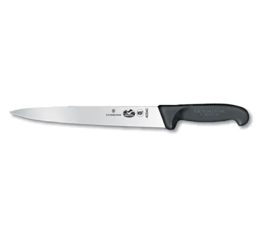 Transform Your Restaurant's Performance with the Victorinox Swiss Army, 5.4503.25 Slicer Knife. This high-quality knife is designed to enhance your culinary experience and elevate your restaurant's efficiency. With its 10" semi-flexible, pointed blade, this knife effortlessly slices through meats, vegetables, and more, ensuring precise cuts every time. The black Fibrox Pro handle provides a comfortable grip, while its slip-resistant design ensures safety in a fast-paced kitchen environment. Made by Victorinox Swiss Army, a trusted name in cutlery, this knife is NSF certified, guaranteeing its durability and suitability for commercial restaurant use. Whether you're a professional chef or a restaurant owner, this slicer knife is a must-have tool that will streamline your food preparation process and deliver exceptional results. Upgrade your kitchen with the Victorinox Swiss Army, 5.4503.25 Slicer Knife and experience the difference it makes in your restaurant's performance.