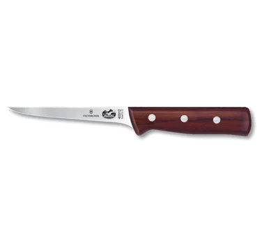 Create Culinary Magic with Ease through the Victorinox Swiss Army, 5.6406.12-X1 Boning Knife. This high-quality knife is a must-have for any commercial restaurant. With its 5" straight, narrow, and stiff blade made of high carbon steel, it effortlessly glides through meat, making it perfect for deboning tasks. The rosewood handle provides a comfortable grip, ensuring precision and control during use. Packaged in a convenient clamshell/peggable package, this knife is ready to be put to work in your kitchen. Whether you're a professional chef or a culinary enthusiast, this Victorinox Swiss Army Boning Knife will elevate your cooking experience. Its durability and authenticity, backed by the trusted Victorinox Swiss Army brand, make it a reliable tool for any commercial restaurant setting. Invest in this knife and unlock your culinary potential.